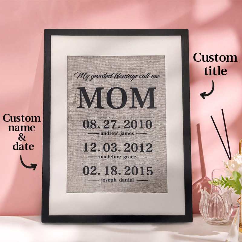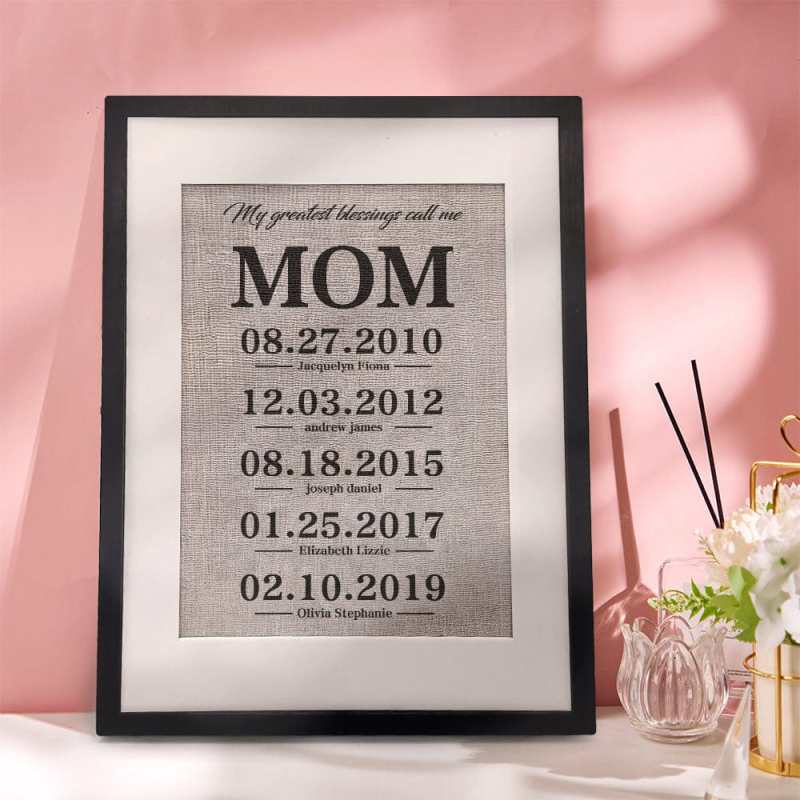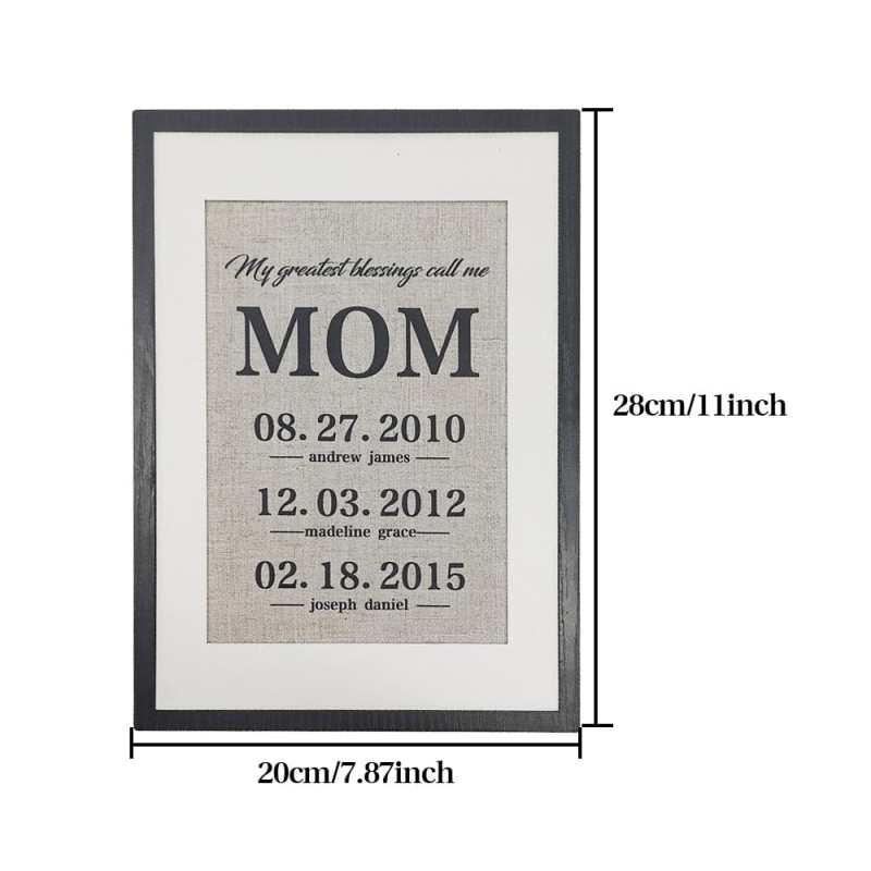 Looking for a thoughtful and unique gift for your mom or grandma? Our handmade burlap prints are a great way to show your mom how much you love her. Suitable for many occasions, such as Mother's Day, birthdays, holidays, anniversaries and more. The unique design allows you to personalize it with family members' names and birthdays.