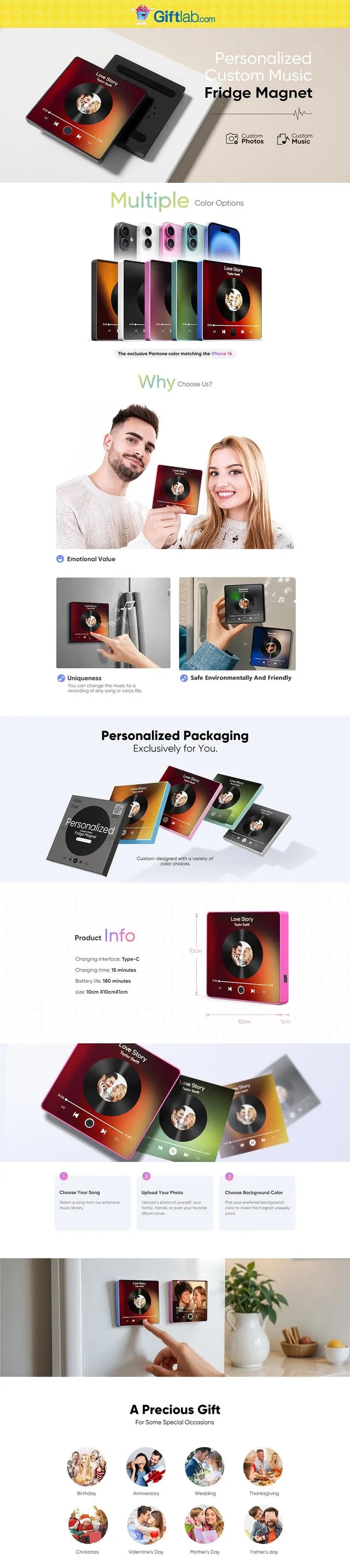 Uniqueness: The one and only customized music refrigerator magnet on the market makes this gift a unique witness to your love.