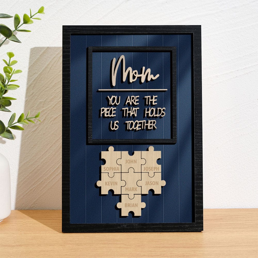 Customizable Names "you are the piece that holds us together" plaque with customizable puzzle pieces with names on them!