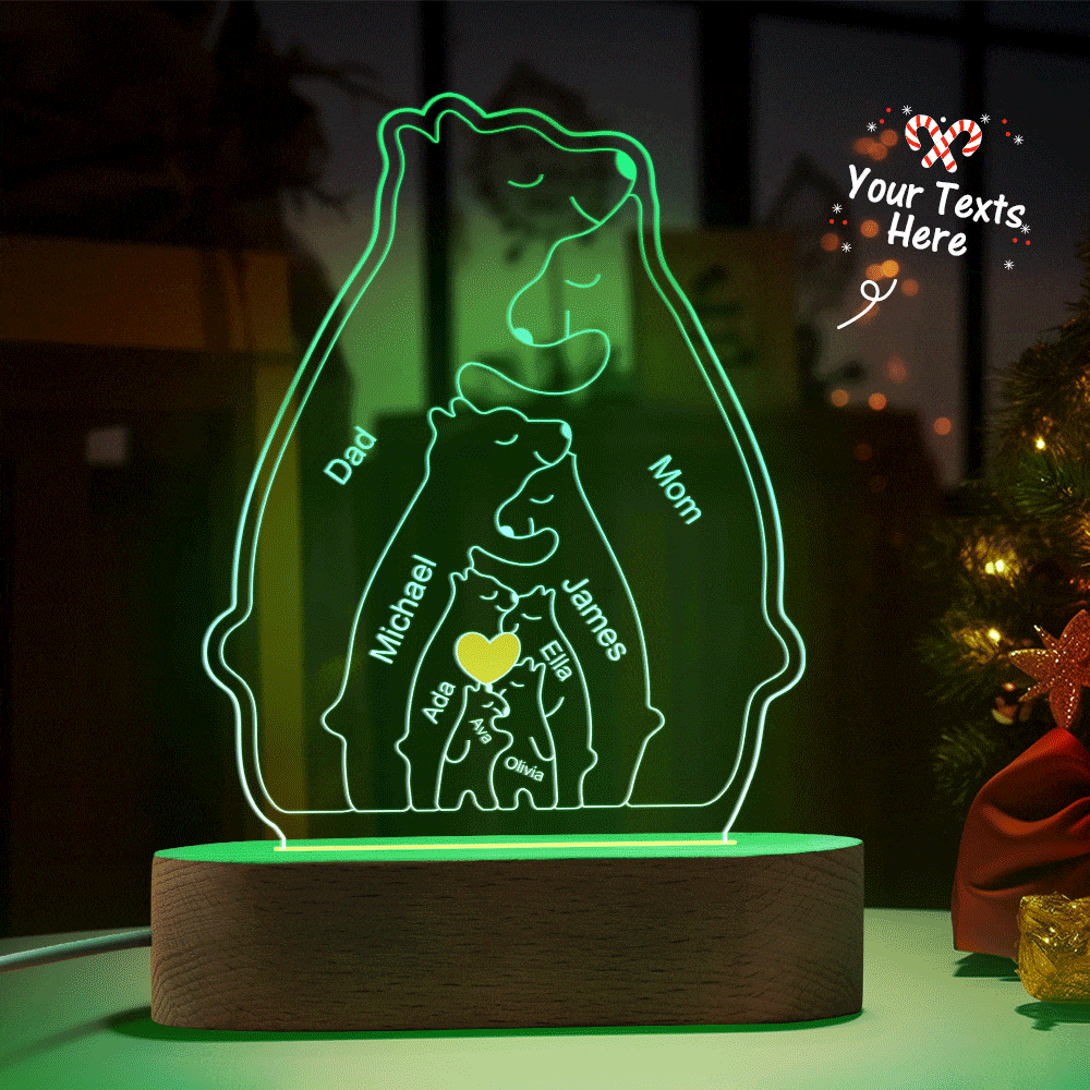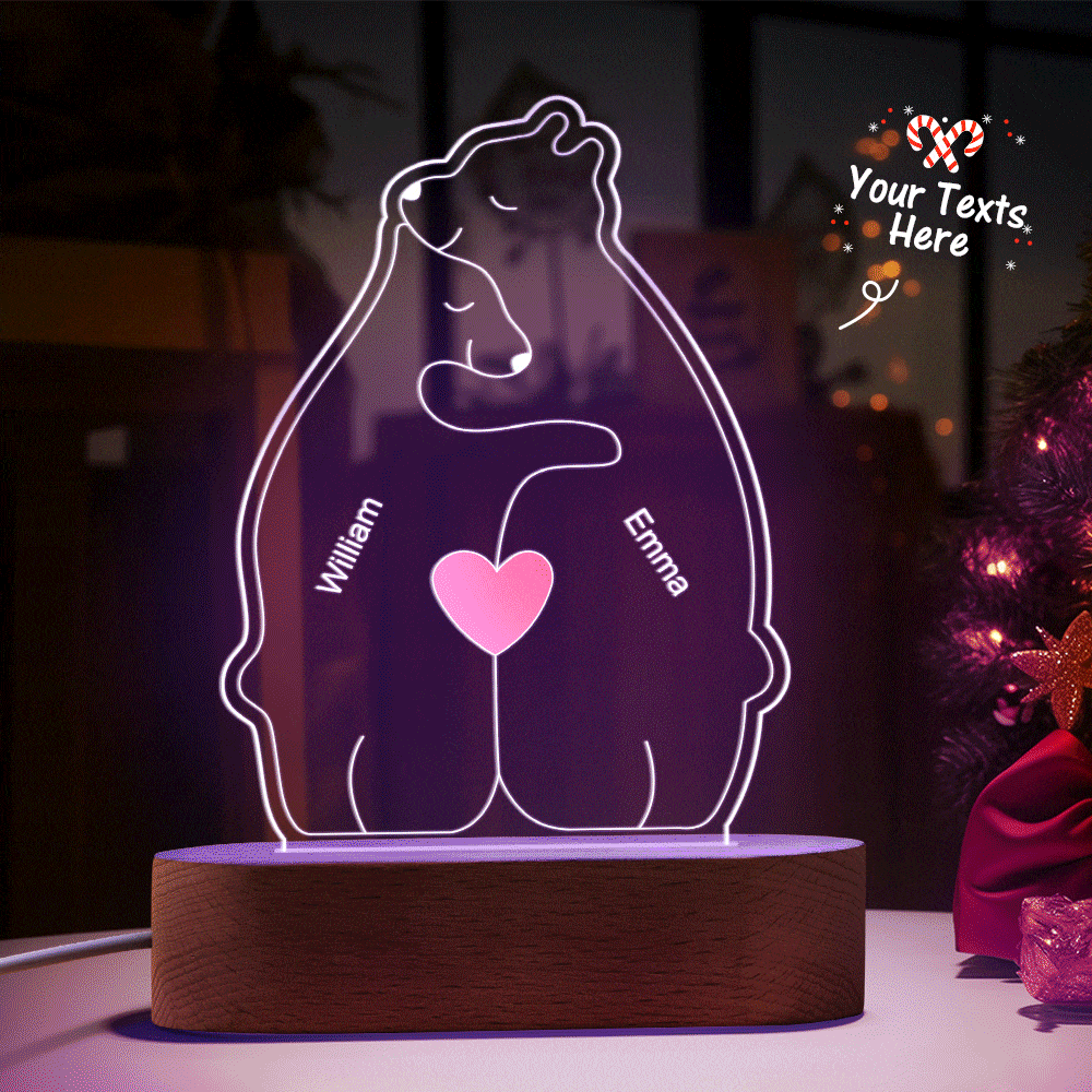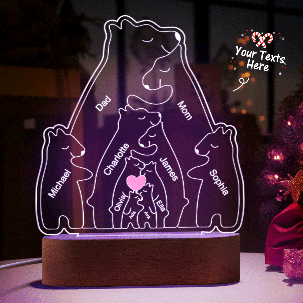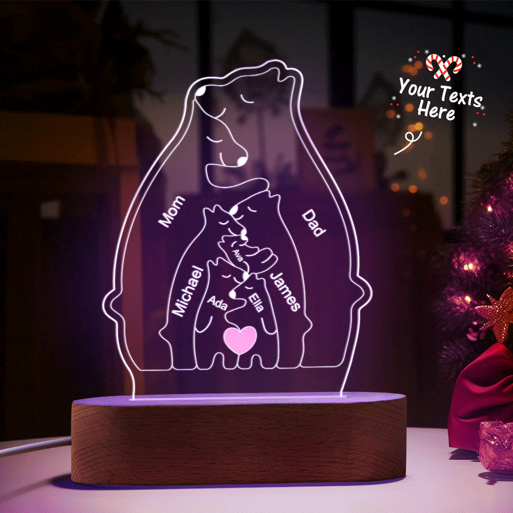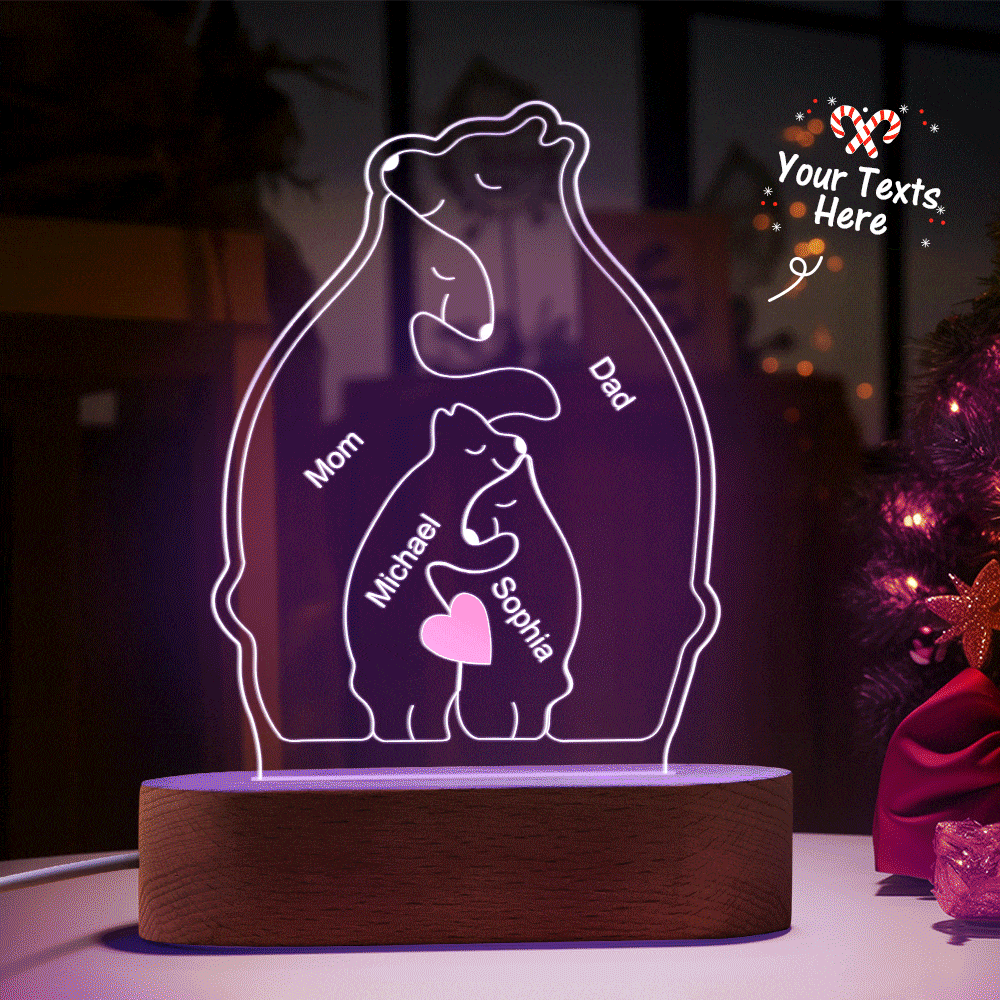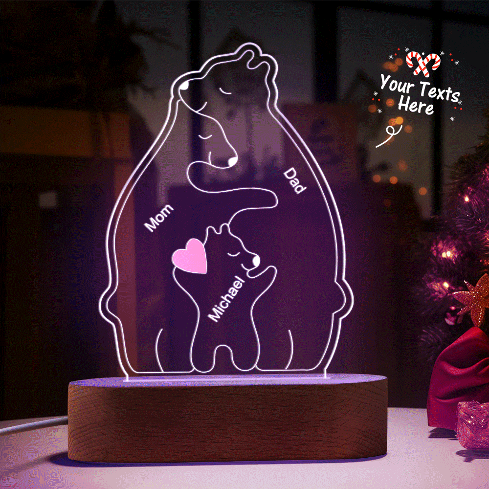 Personalized Names Warm Bear Family Acrylic Lamp Custom Night Light Best Christmas Gift