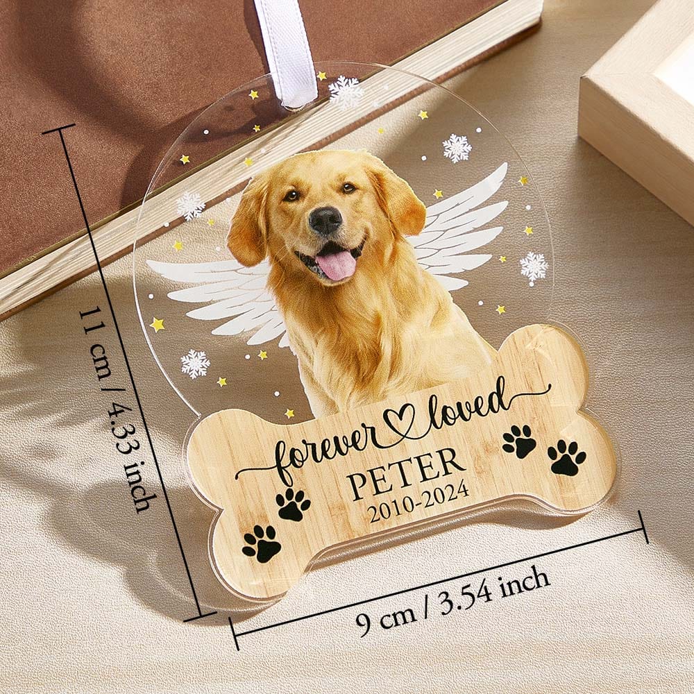 Honor your beloved pet with a personalized memorial ornament. This keepsake gift, made for dog lovers, serves as a reminder of the special moments shared with your furry friend. Cherish their memory during the holiday season with this beautiful ornament.