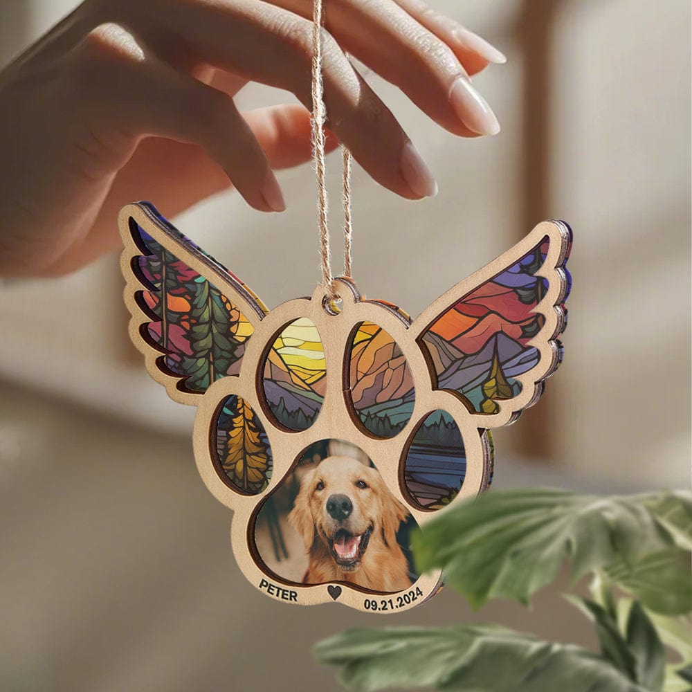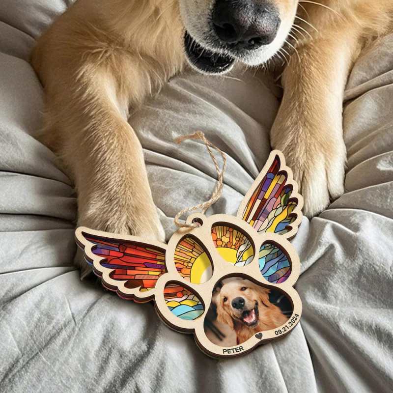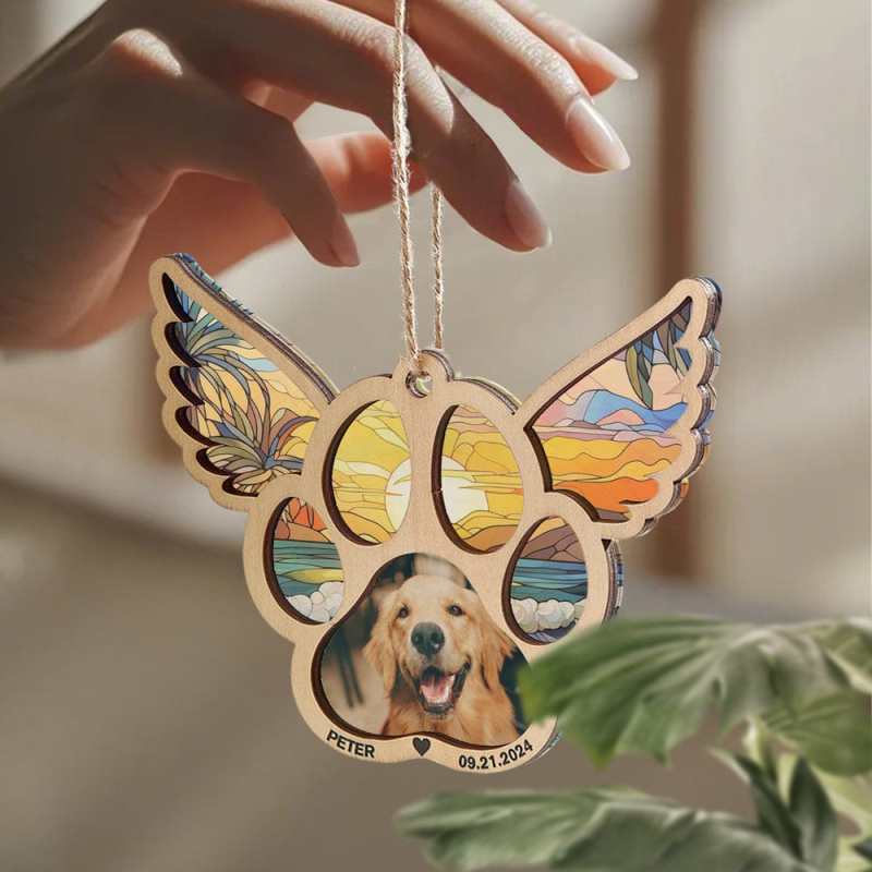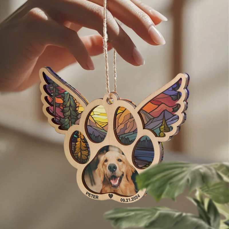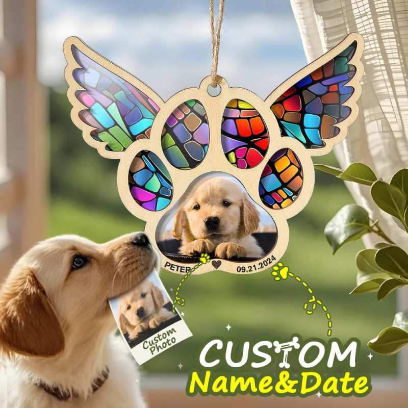 Celebrate the memory of your furry friend with our personalized pet suncatcher ornament. This special ornament features your pet's name and photo, making it a beautiful memorial gift for pet lovers. Each one is custom-made and captures the unique bond between you and your beloved pet.