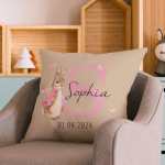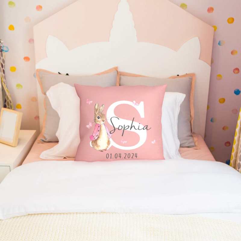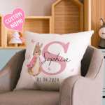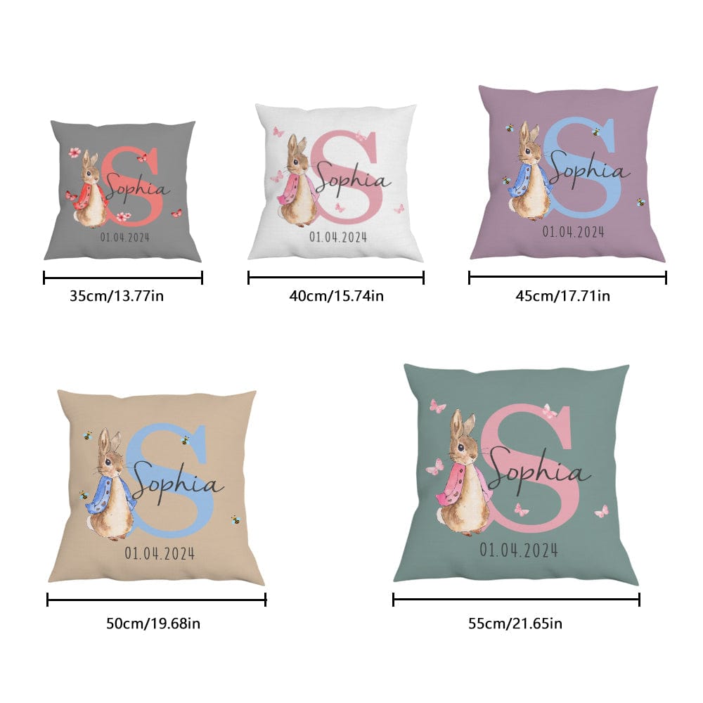 This personalized Peter Rabbit throw pillow cover is a unique and thoughtful gift for baby showers or birthdays. Featuring a charming design of Peter Rabbit, this throw pillow cover can be customized with a name, making it a special keepsake for any child. Made from high-quality materials, it is both durable and soft, adding a touch of comfort and personalized style to any room.