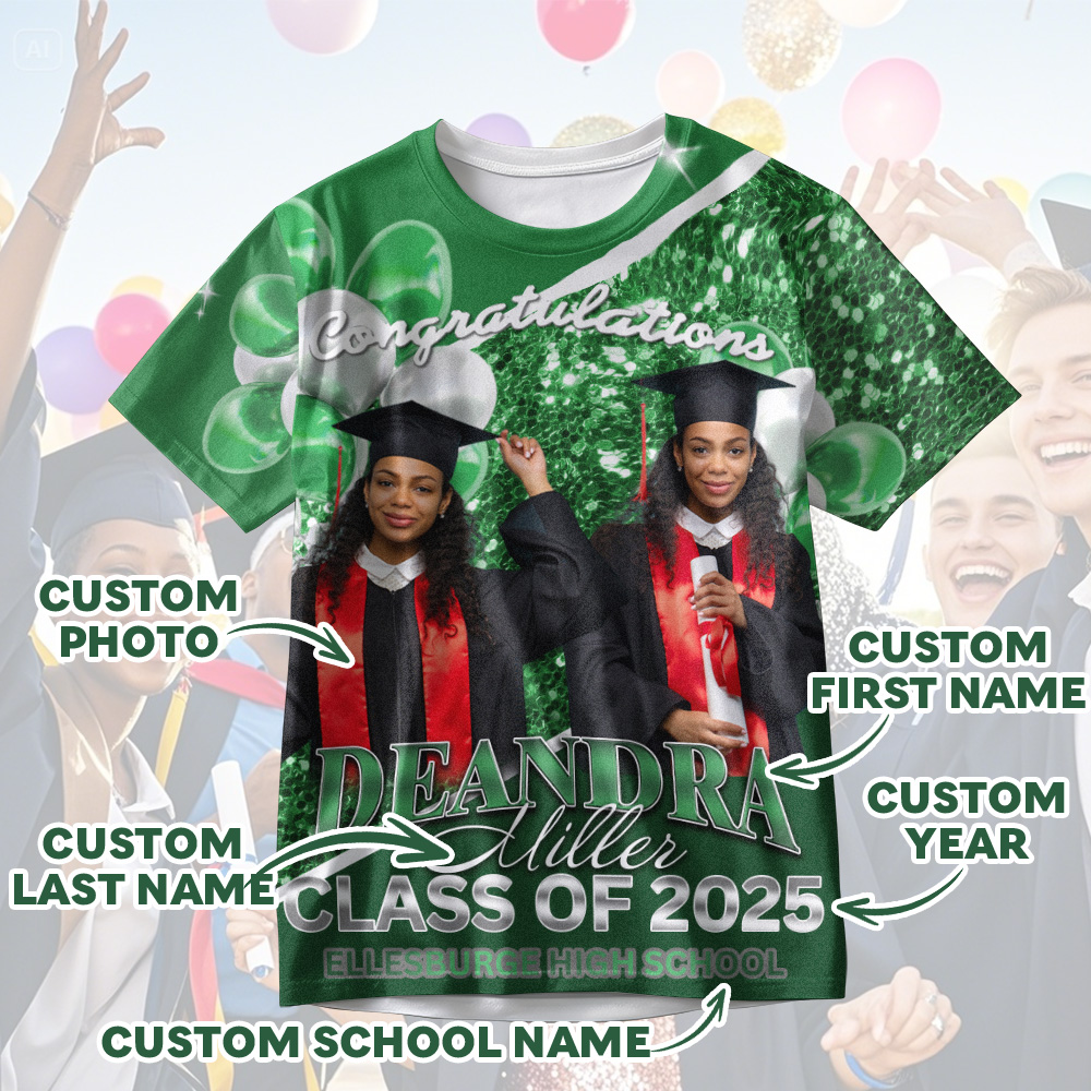 Celebrate their incredible achievement with a truly unique and memorable gift: our Custom 3D Graduation T-Shirt! This isn't just another ordinary graduation tee; it's a personalized keepsake that allows you to create a one-of-a-kind design to commemorate this special milestone.