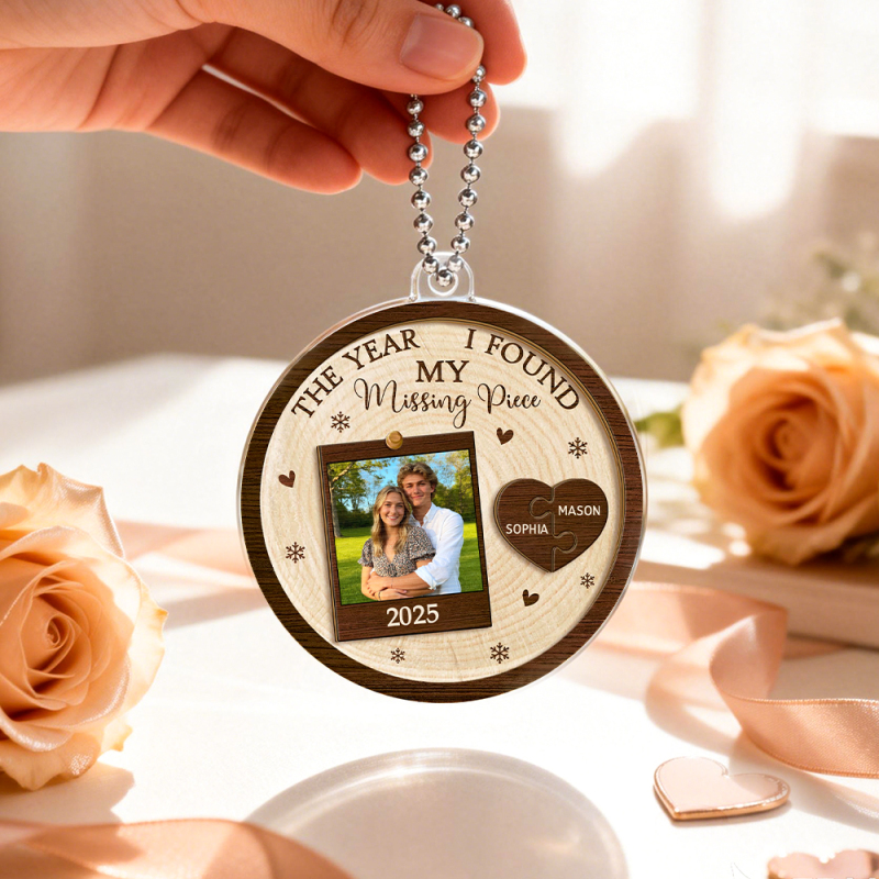 Celebrate love and the moment you found your missing piece with this beautifully crafted custom ornament. Featuring your favorite photo and names in a heart-shaped puzzle, this keepsake is perfect for commemorating a special relationship milestone.