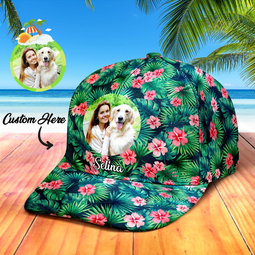 Personalized Photo and Name Hawaiian Style Baseball Cap Gifts for Women Men