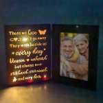 This Personalized Photo Frame with Lights is the perfect gift for Father, Mother, or your loved one. The stunning lights add a beautiful touch to any room, making it a truly special and one-of-a-kind present. Cherish memories with this unique and thoughtful gift.