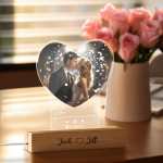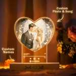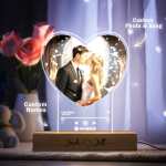 Personalized Photo Heart Shaped Acrylic Lamp Custom Night Light with Engraved Wood Base Gift for Couple