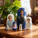 Whether it’s a portrait of your family, a couple’s photo, or a cherished moment with friends, these nesting dolls bring warmth and personality to any space. Made from high-quality wood and polished by hand, they blend traditional craftsmanship with your personal story.