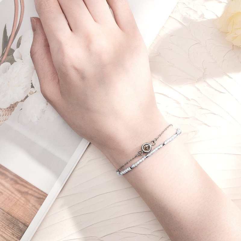 Experience the magic of our Personalized Photo Projection Crystal Double Layers Bracelet. Simply touch to transform your favorite photo into a holographic projection. This unique blend of fashion and emotion allows you to wear your cherished memories as a stylish and sentimental accessory. With an adjustable fit, keep your loved ones close wherever you go.