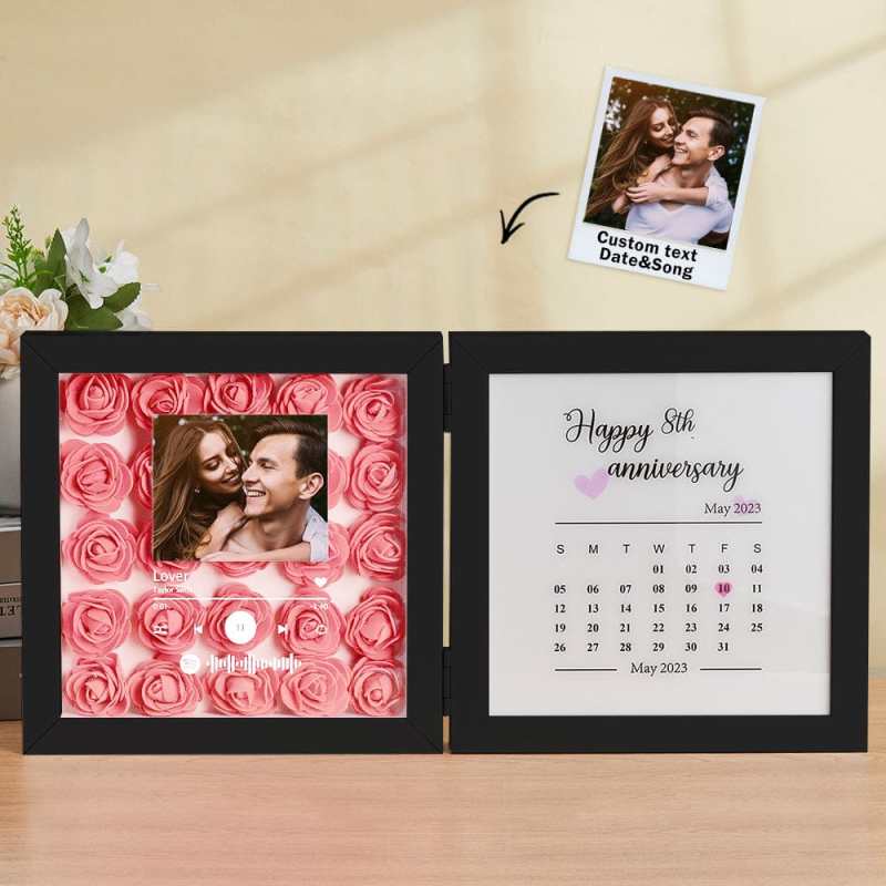 Capture a cherished moment by personalizing the photo and add an extra touch of sentimentality with a custom music code. Imagine the joy as the couple unfolds the frame to reveal their treasured memory, accompanied by their favorite melody.