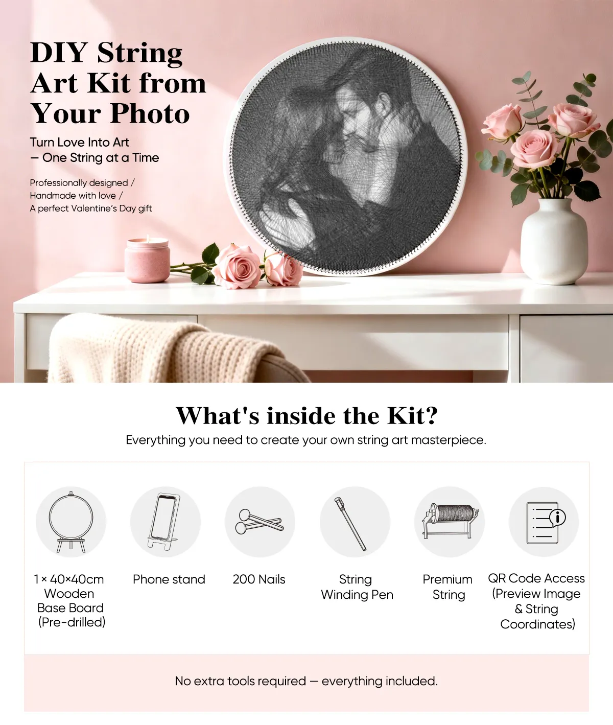 Create a stunning 40cm (16-inch) round photo string art with ease.