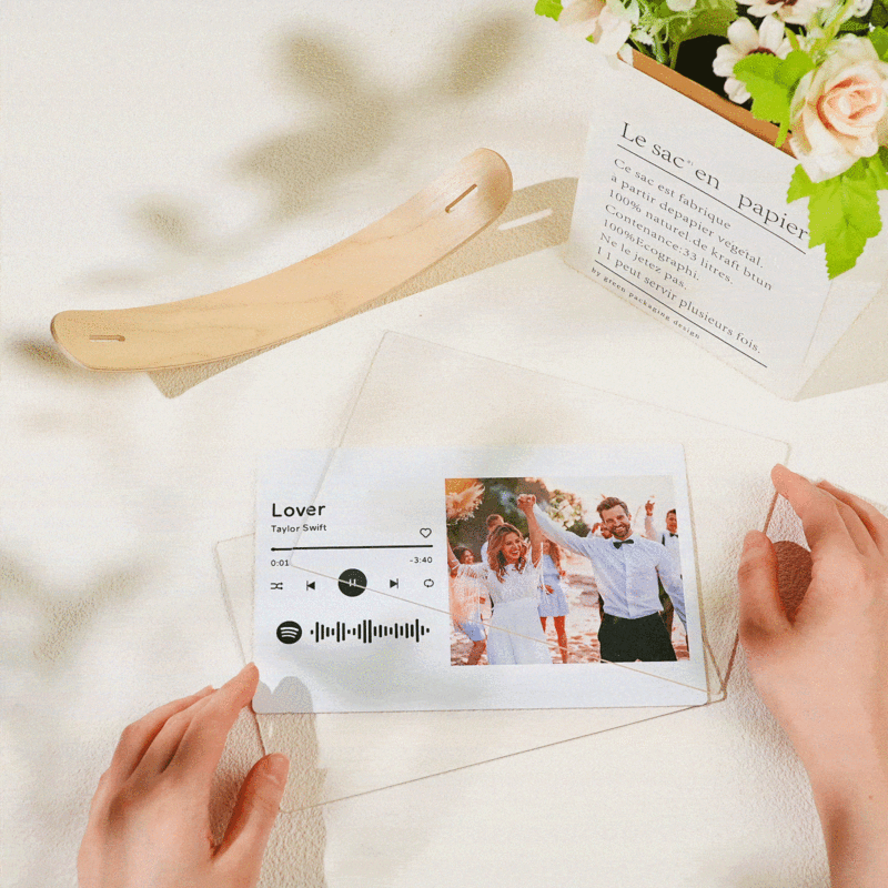Choose a favorite photo capturing a special moment shared between the couple, whether it's a romantic getaway, a milestone celebration, or simply a candid snapshot of everyday happiness. Additionally, select a meaningful song that resonates with the couple's relationship, adding a personalized soundtrack to their cherished memories.