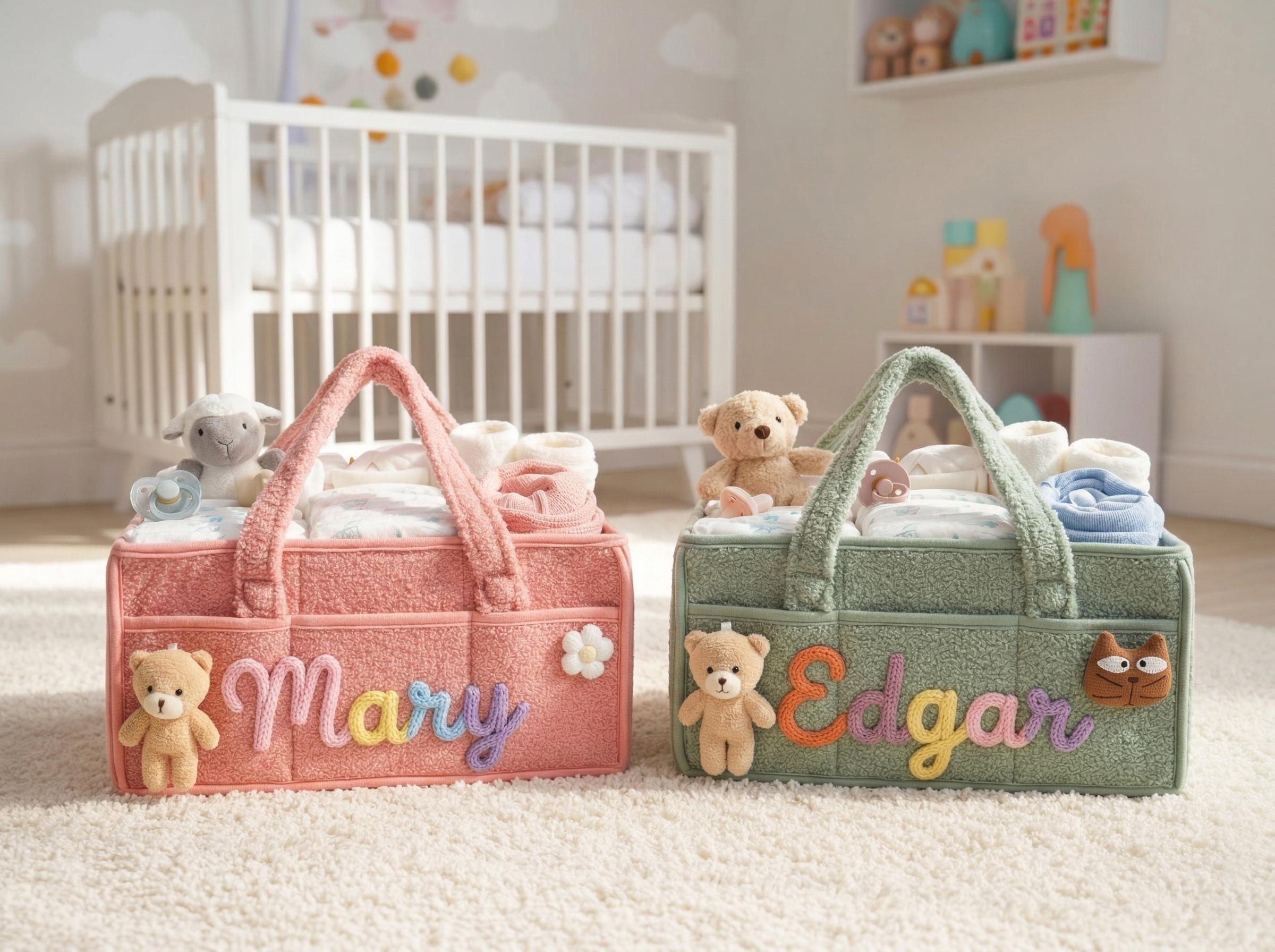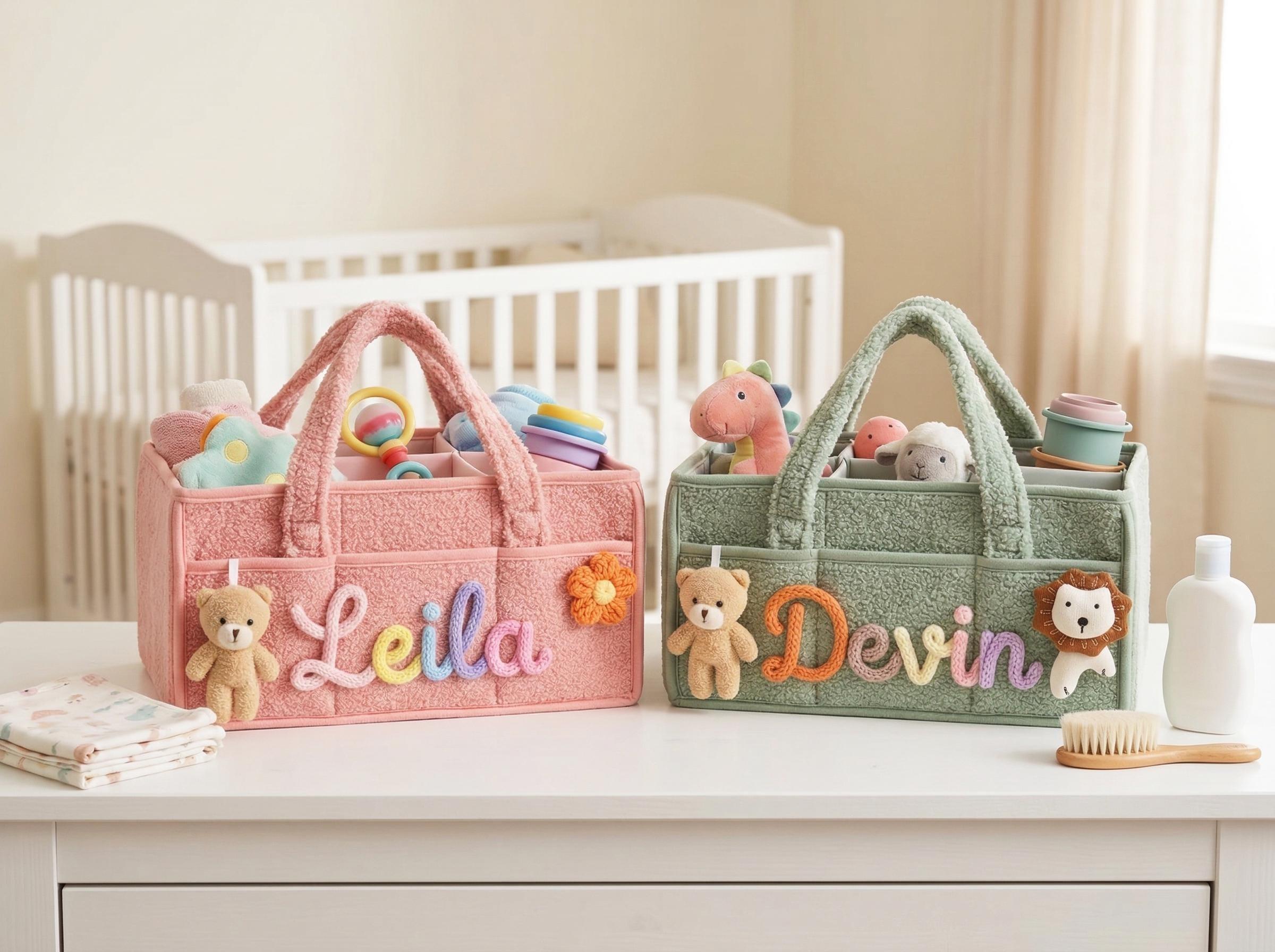 Keep baby essentials tidy in the sweetest way with this personalized plush diaper caddy basket-soft, practical, and made extra special with a custom crochet name and optional cute icon. Designed for nurseries, changing tables, and everyday baby care, this storage basket adds a cozy decorative touch while keeping diapers, wipes, toys, bibs, and lotions all in one easy-to-carry place.