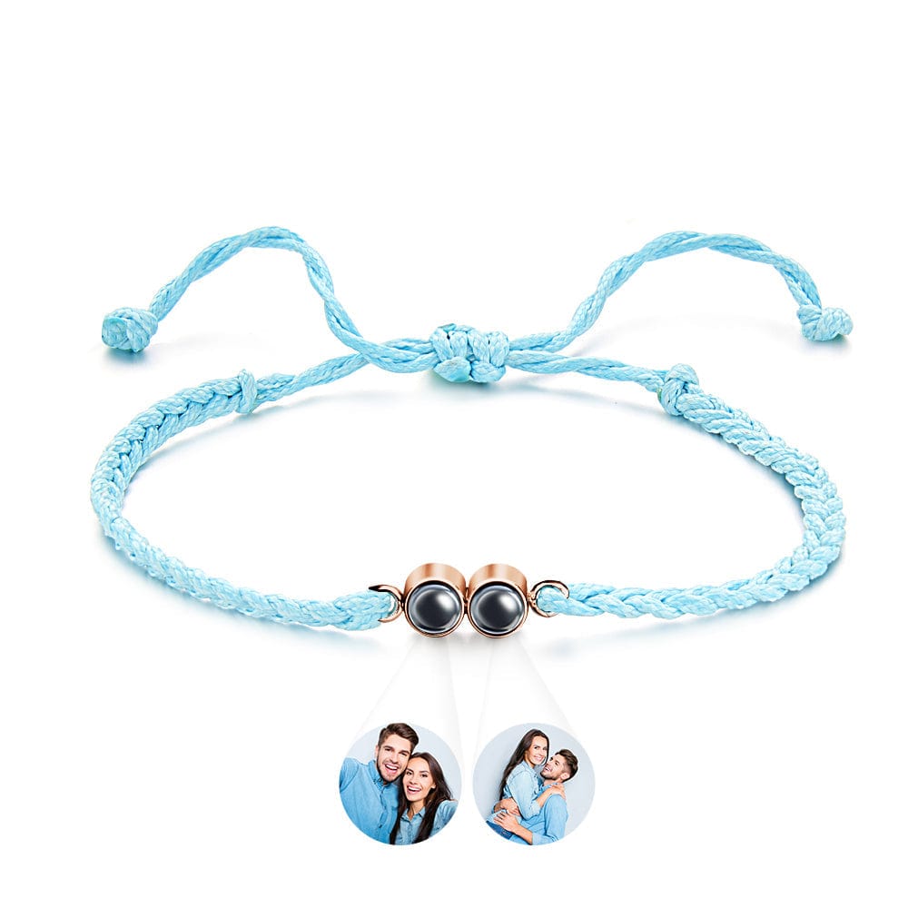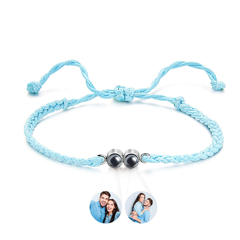 Elevate your gifting game with our Personalized Projected Picture Bracelet. This unique accessory features a multicolor braided rope, customizable with your choice of two photos. Perfect for capturing cherished memories or showcasing your favorite moments, this bracelet is a thoughtful and stylish gift option. With its simple yet eye-catching design, it adds a personal touch to any outfit. Whether it's for a special occasion or just to show someone you care, this bracelet is sure to make a lasting impression. Shop now and create a personalized gift they'll treasure forever.