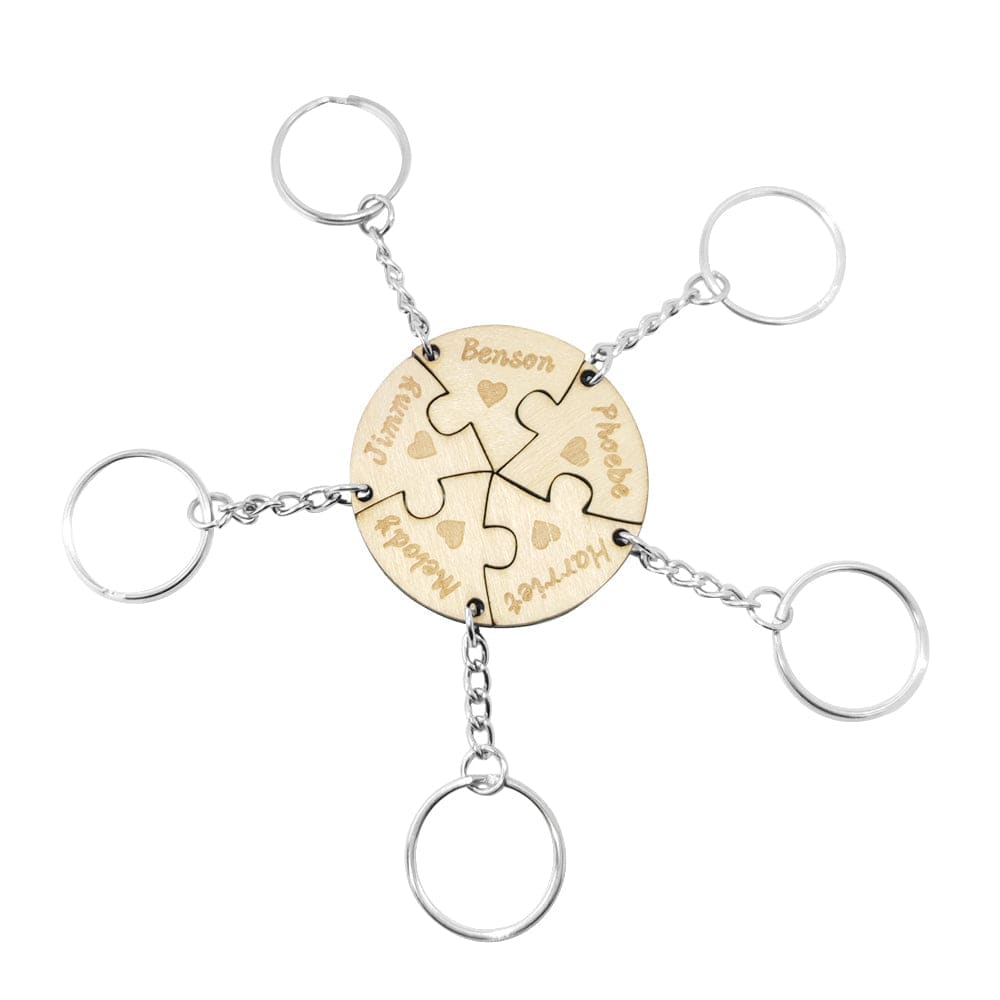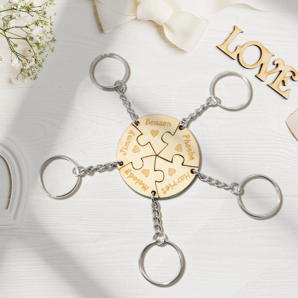 This is a lovely personalized keychain, including 5 puzzle parts keychains. Personalized your special keychain to your family. Carve your name on it. Take the keychain with you and you will feel connected to them. This will be the best gift for them on anniversaries, birthdays, etc.