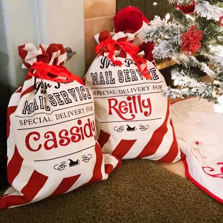 PERSONALIZED SANTA SACK with RED GLITTER WRITING
