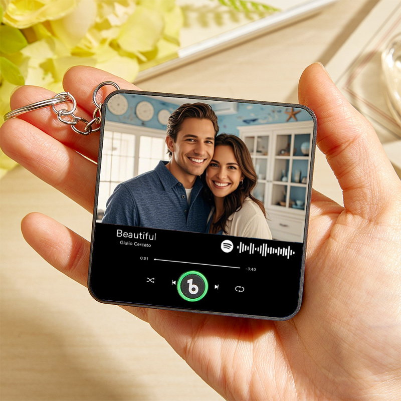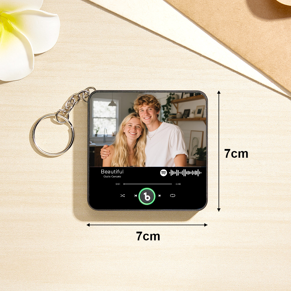 Celebrate memories with this Personalized Photo Music Keychain - a mini music box you can carry anywhere. Made of premium-quality acrylic, this durable and stylish accessory features crystal-clear sound and a push-button playback function, letting you enjoy music instantly without using a cell phone.