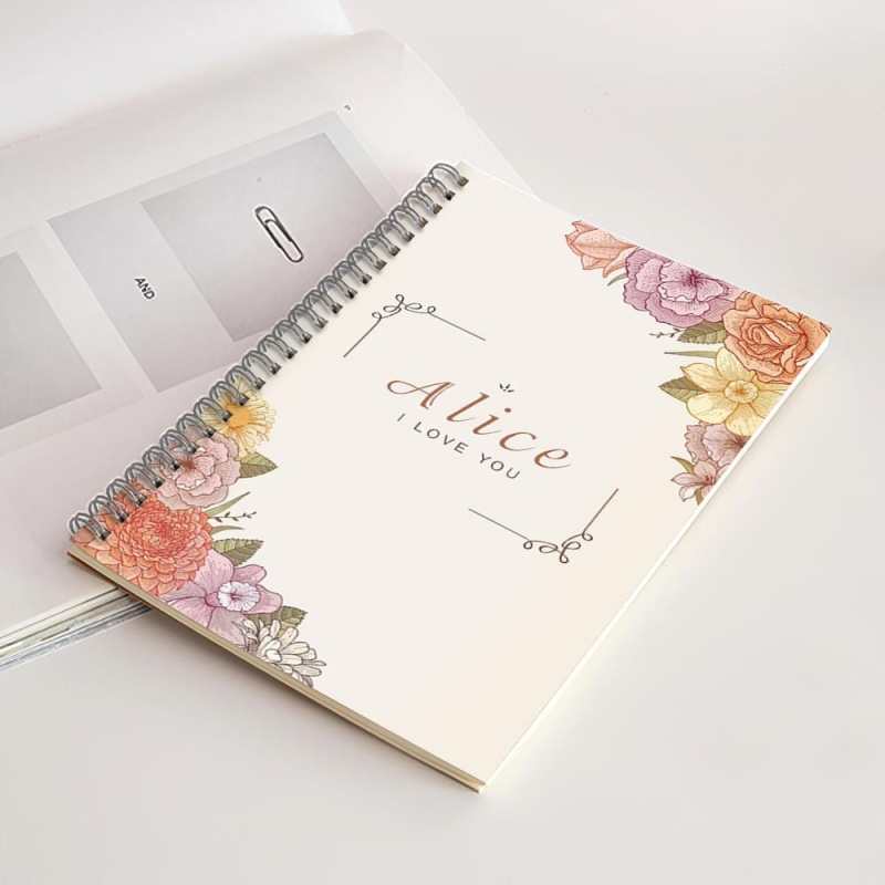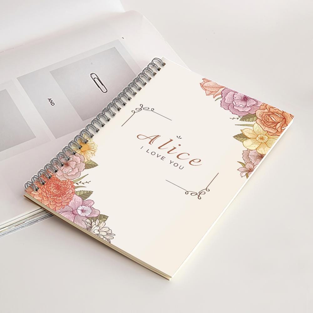 Personalized Spiral Notebook Ruled Line Flower 14*21CM