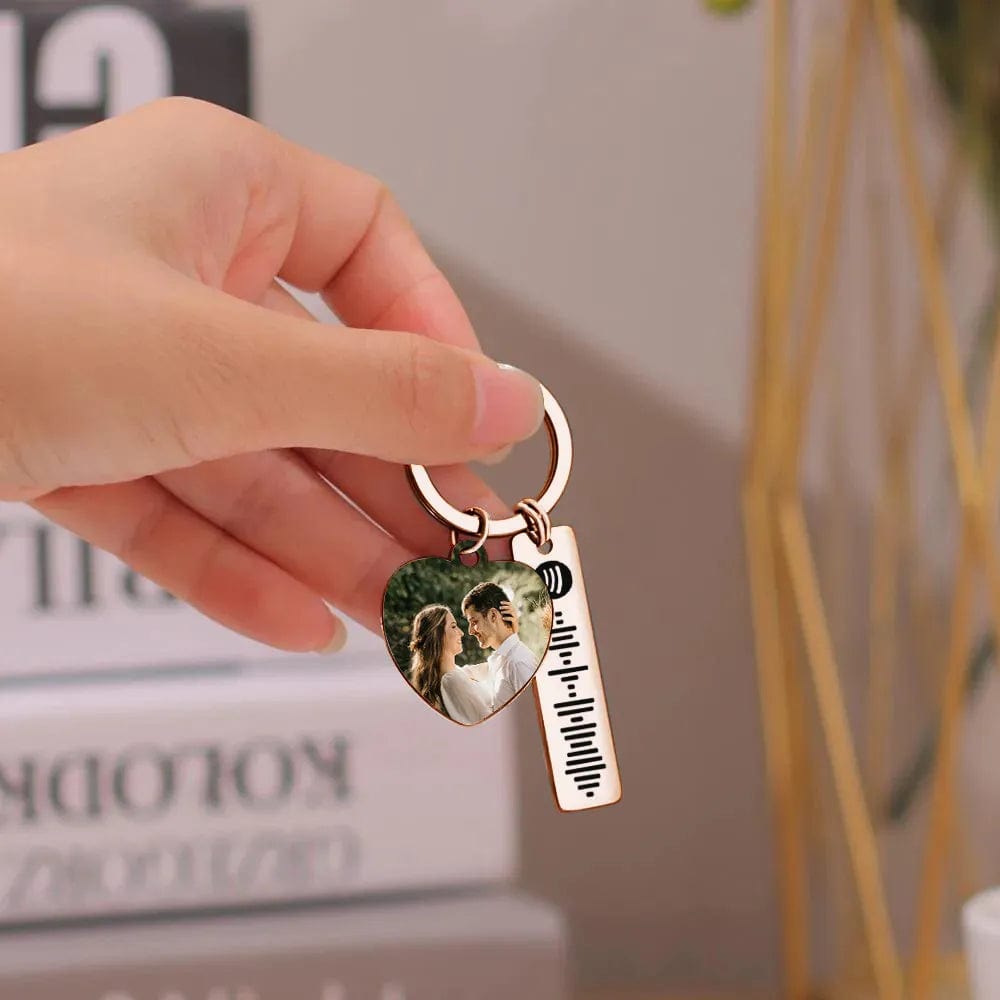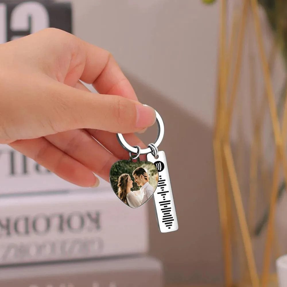 Personalized Spotify Keychain Custom Picture & Music Song Code Heart Couples Photo Keyring Gifts for Boyfriend