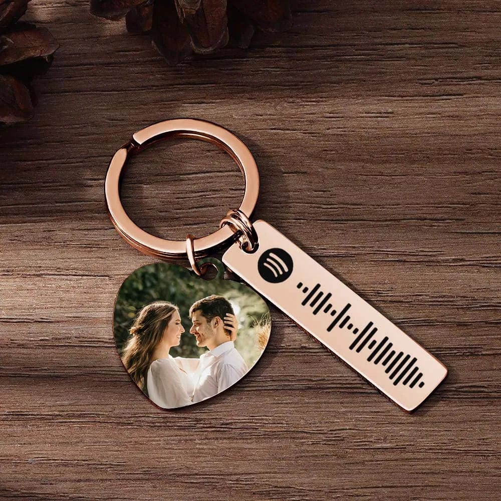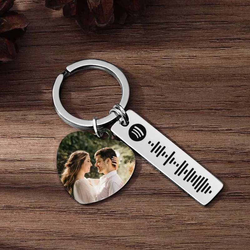 Personalized Spotify Keychain Custom Picture & Music Song Code Heart Couples Photo Keyring Gifts for Boyfriend