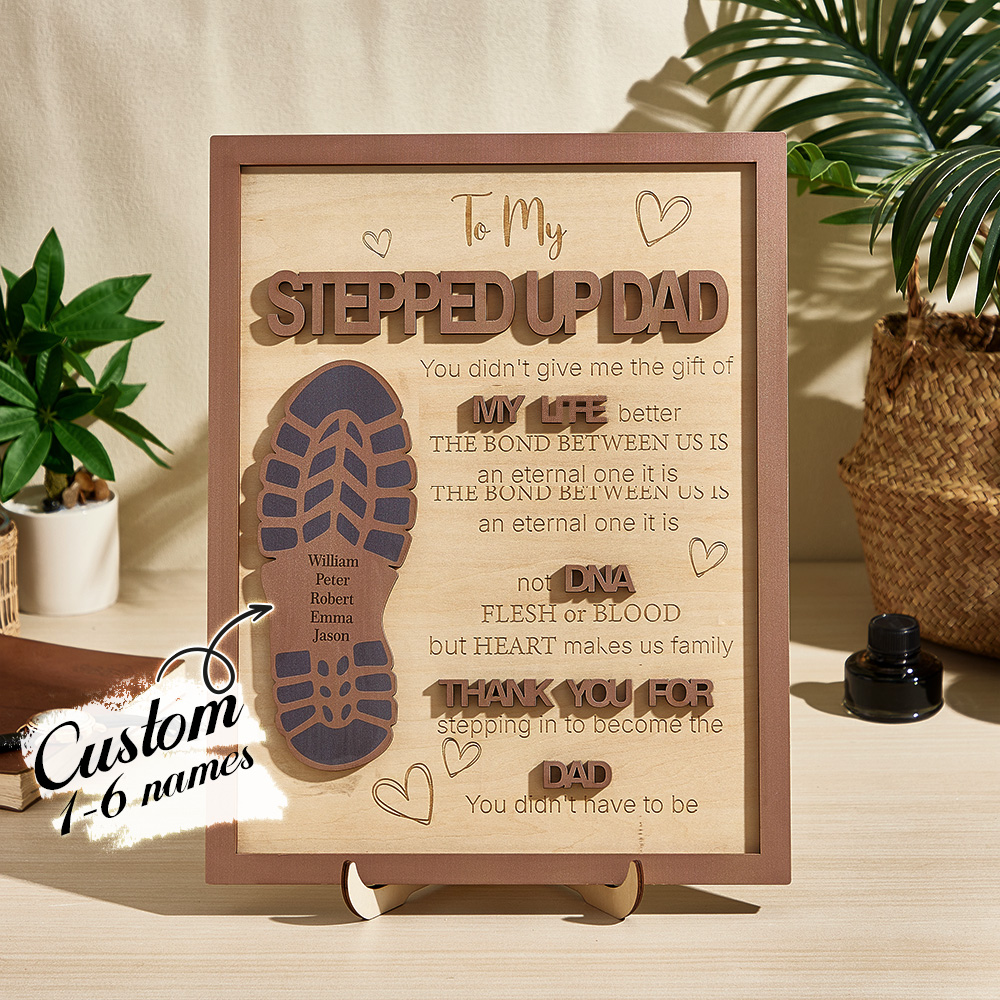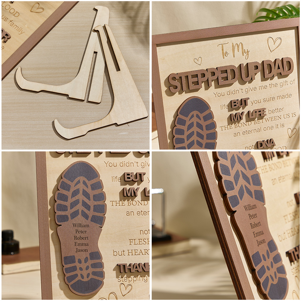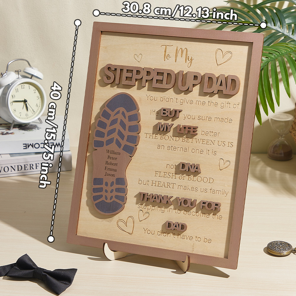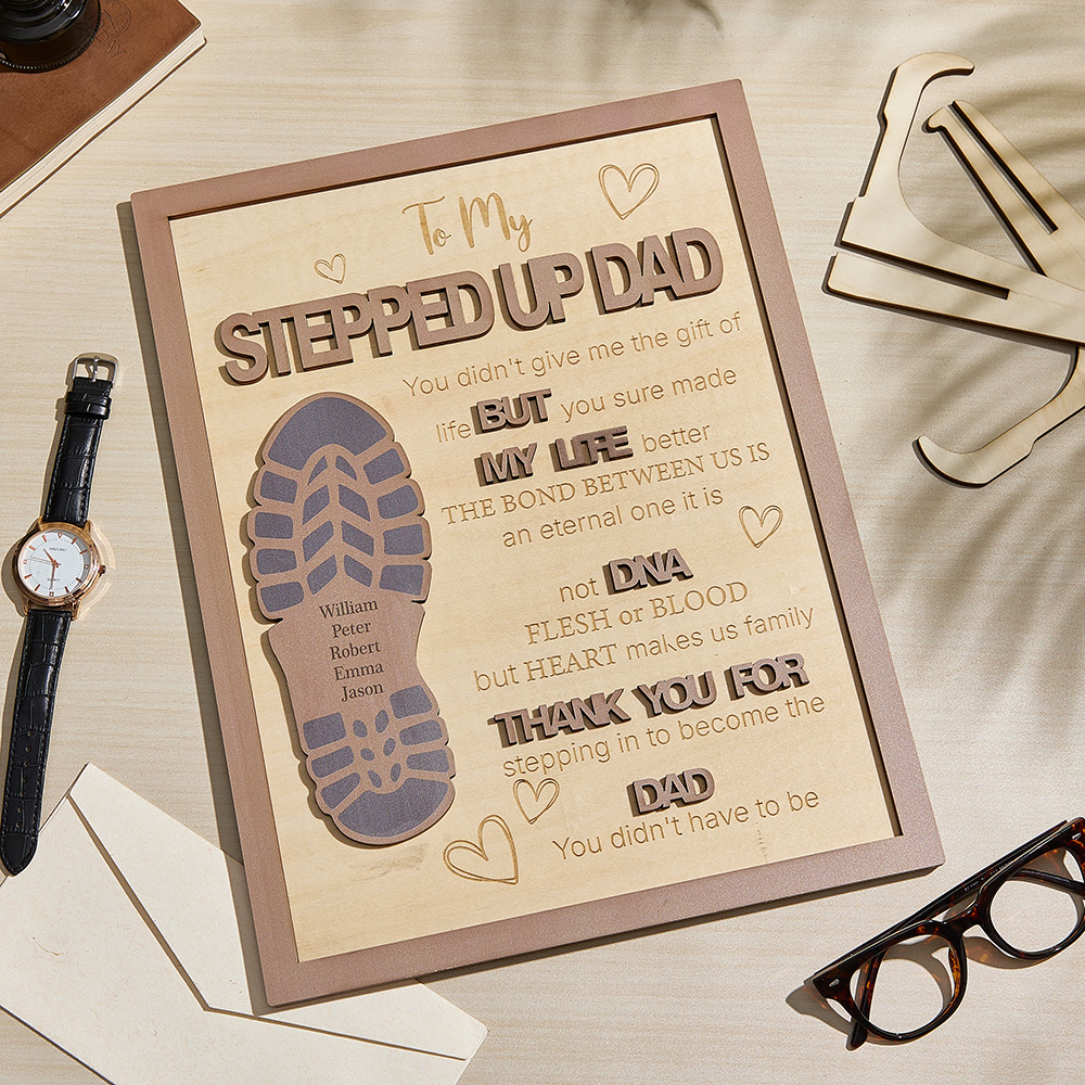 Elevate Father's Day gifting with our Personalized Stepped Up Dad Wooden Sign. Honor Dad's impact with this unique footprint design. Perfect for showing gratitude in a meaningful way.