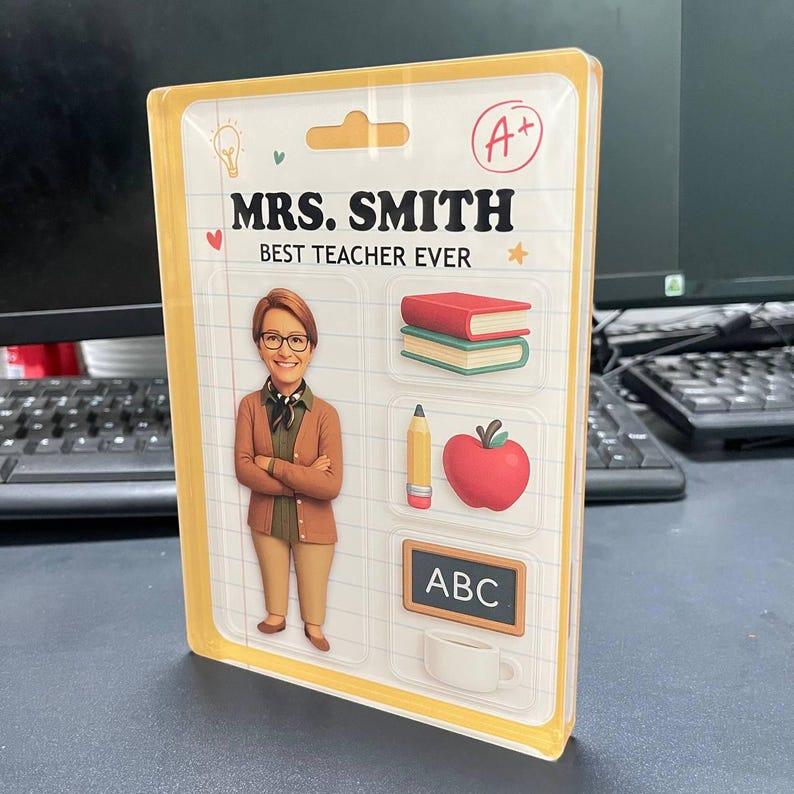 Celebrate your favorite educators with a truly unique, custom gift! Our Personalized Teacher Acrylic Blocks, 3D Action Figure Acrylic Block Keychains, and Fridge Magnets transform their photo into a fun, stylized representation.
