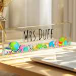 This personalized desk name plate for teachers is the perfect gift for any educator. Made of high-quality materials, it adds a touch of professionalism to any classroom. With customizable options, it is a unique and thoughtful way to show appreciation and recognition for a teacher's hard work and dedication.