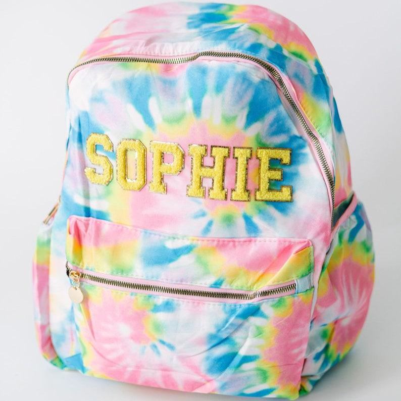 Personalized Tie Dye Backpack | Back to School Bag with Patches | Custom Backpack