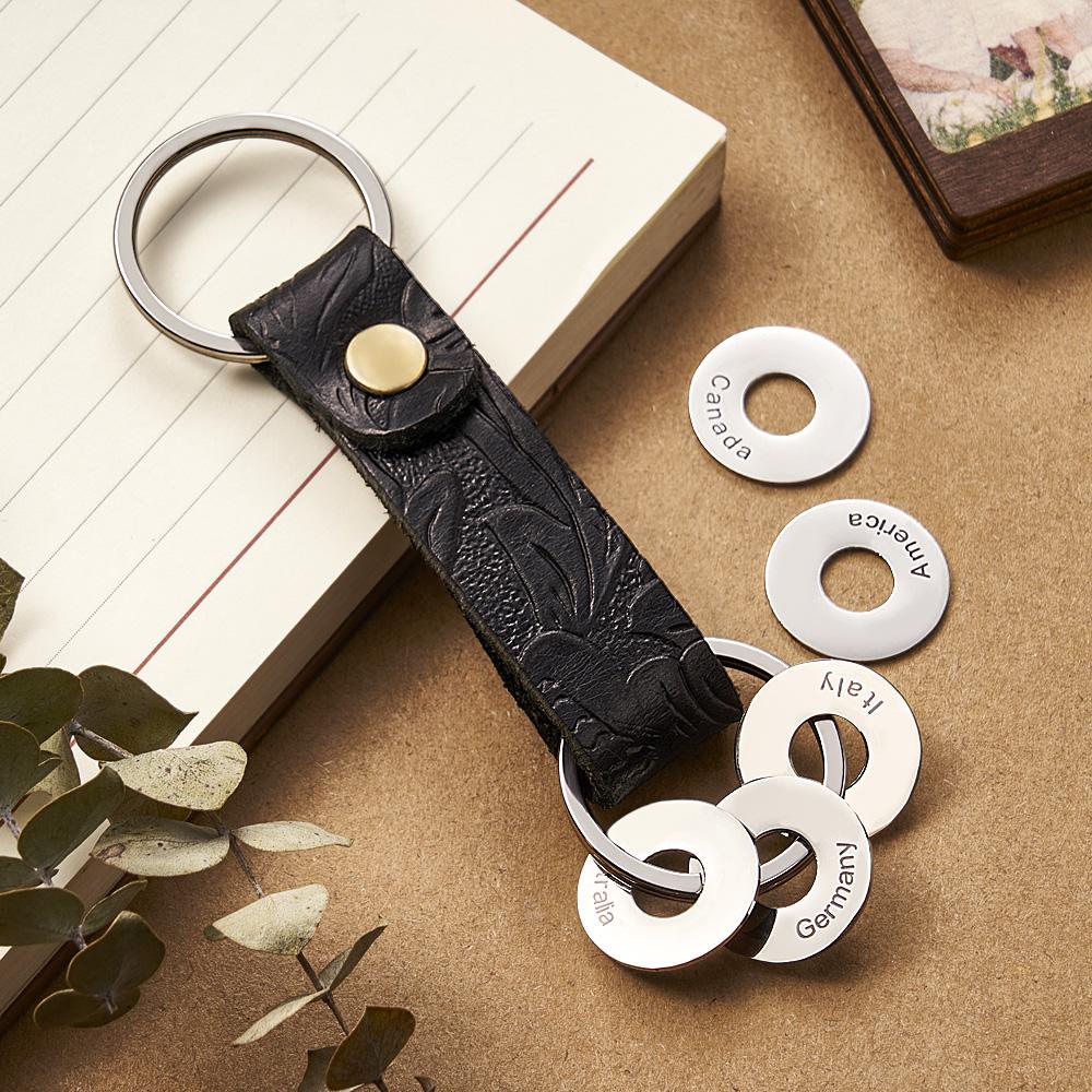 Our exquisite country ring keychain is specially designed for passionate travel lovers who yearn to carry a piece of their adventurous spirit wherever they go. It is suitable for people who like to travel and check-in. Every time you go to a city, add a ring engraved with the name of the place, representing the footprints you have stepped on. You can engrave the name of the country you have been to on the ring, turning it into a cherished keepsake that holds sentimental value. The ring is easy to remove and add a new one. This Country Ring Keychain Gift is perfect for various occasions, making it an ideal present for birthdays, anniversaries, graduations, or simply as a thoughtful token of appreciation for a travel enthusiast in your life. It is a constant companion, reminding them of their unforgettable journeys and inspiring future explorations.