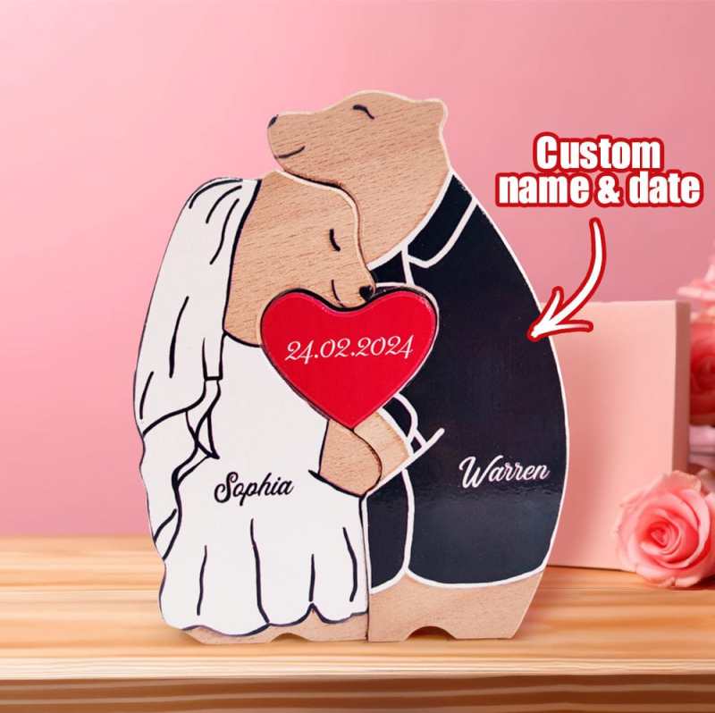 This unique Valentine's Day gift features a personalized wooden bear puzzle with custom couple names. Handcrafted and customizable, this puzzle adds a touch of romance and thoughtfulness to any occasion. Surprise your loved one with a one-of-a-kind gift that will bring joy and create memories for years to come.