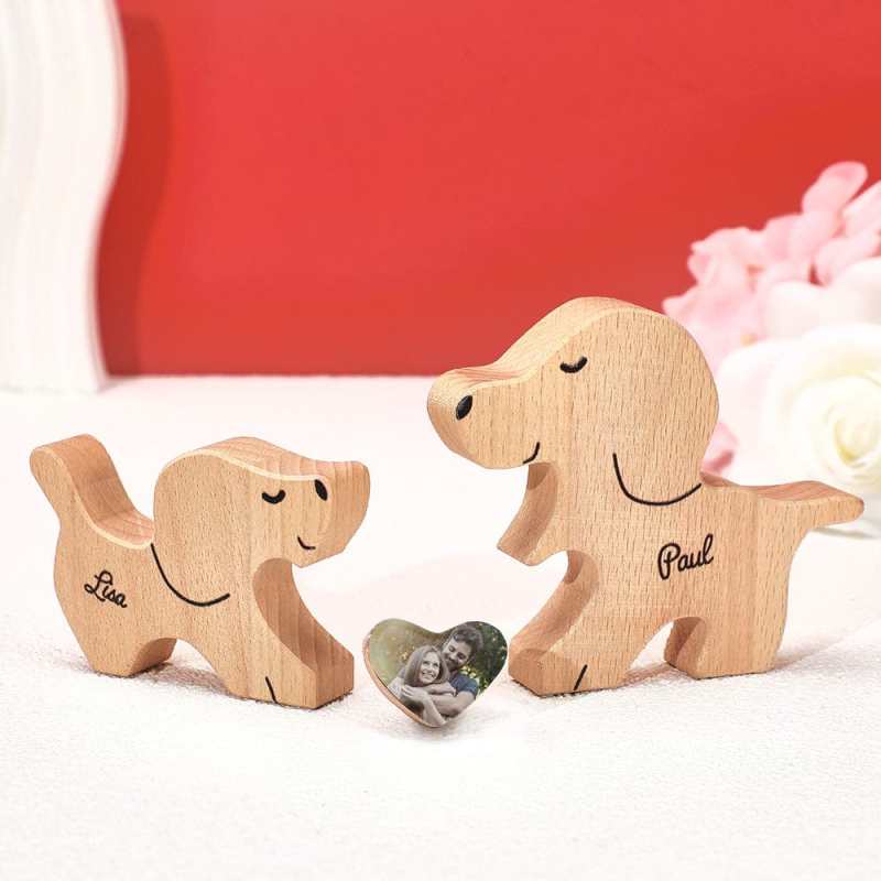 Personalized Wooden Dog Couple Love Heart Puzzle Custom Valentine's Day Gifts