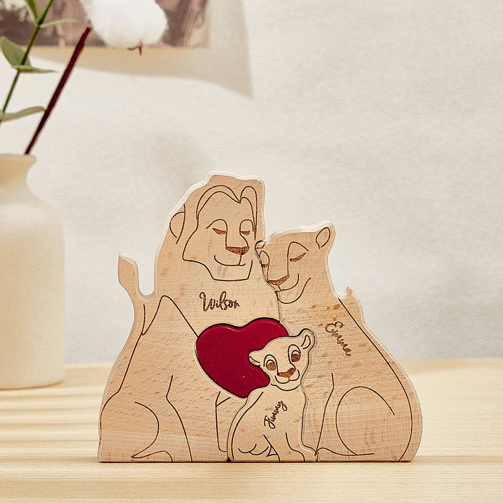Commemorate the unique bond and treasured memories of your family with our personalized custom lion-shaped wooden art puzzle. This thoughtful gift allows you to display the names of each family member, creating a special and meaningful keepsake that celebrates your family's journey.