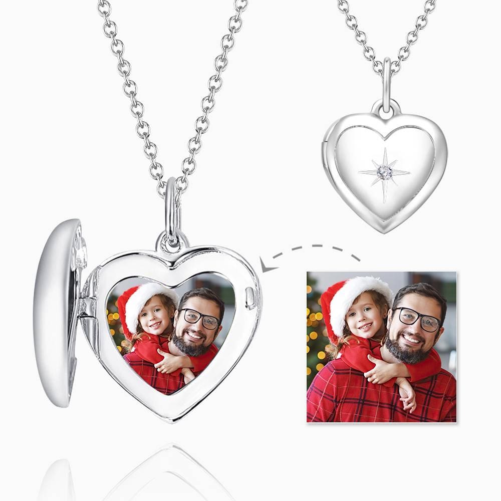 Photo Locket Necklace Gifts for Couple Platinum Plated Star Printing