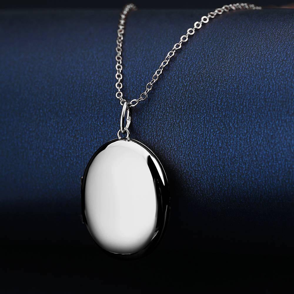 Photo Locket Necklace With Name Oval Platinum Plated