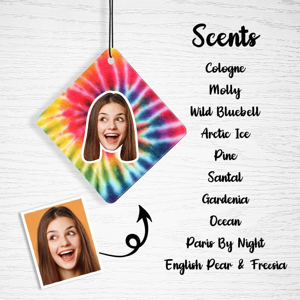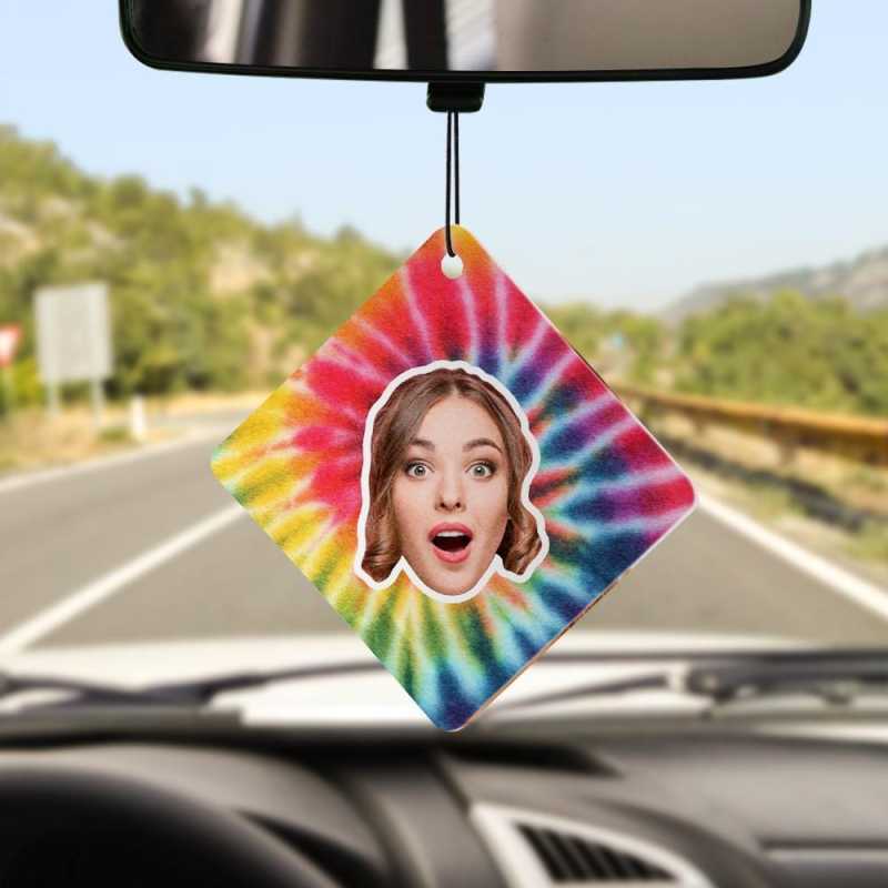 Custom hanging double-sided car air fresheners are the perfect way to prominently display a loved one's photo in your vehicle, office, closet, as decoration, but also bring the smell you want, at the same time, it is also very suitable for sending crafts to your friends, family as a gift. A black elasticated cord is enclosed for hanging.