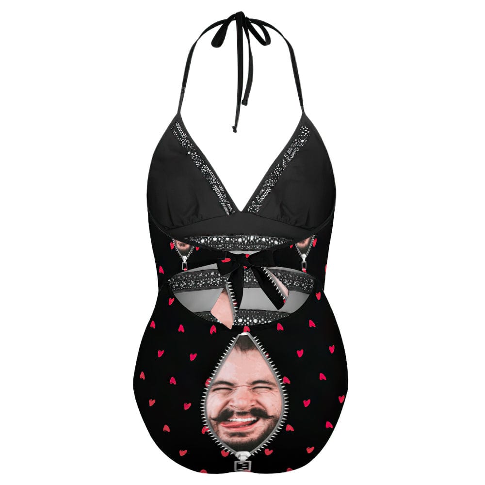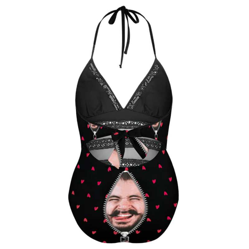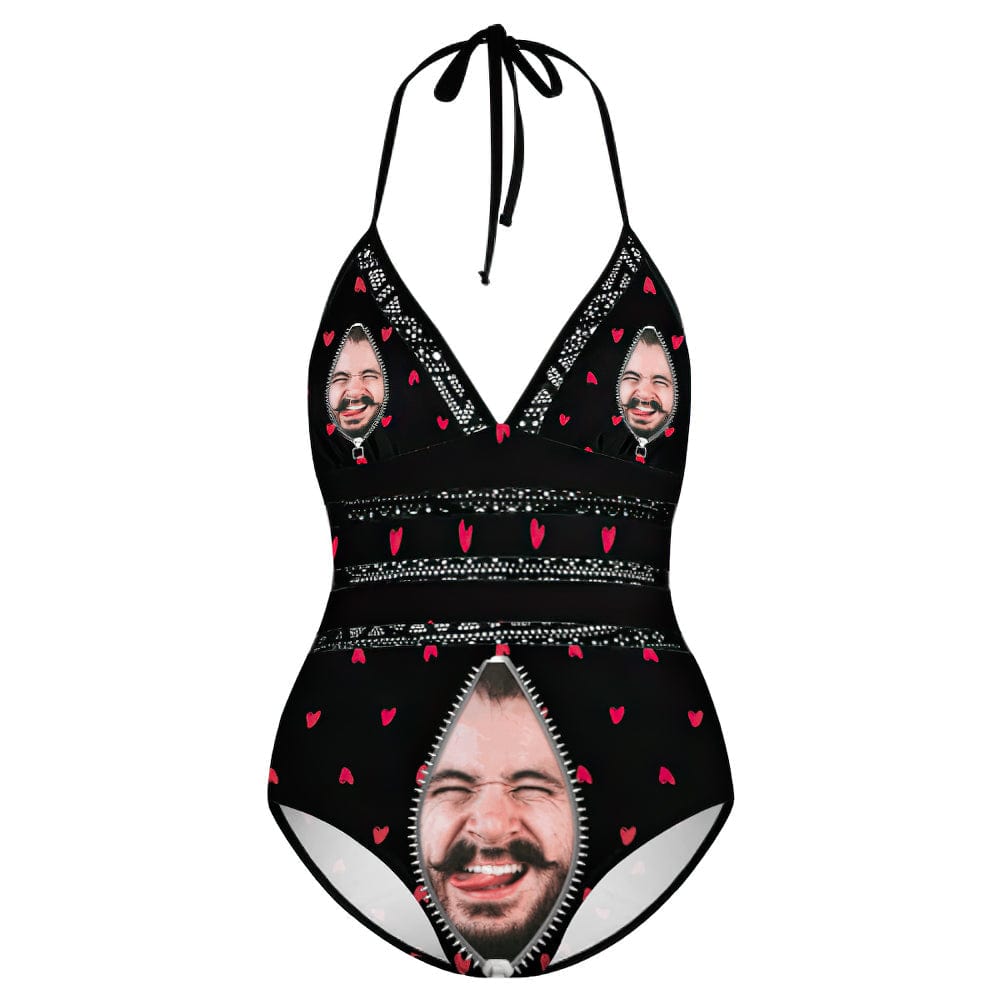 Plus Size Black Swimsuits With Face Zipper Gifts for Her