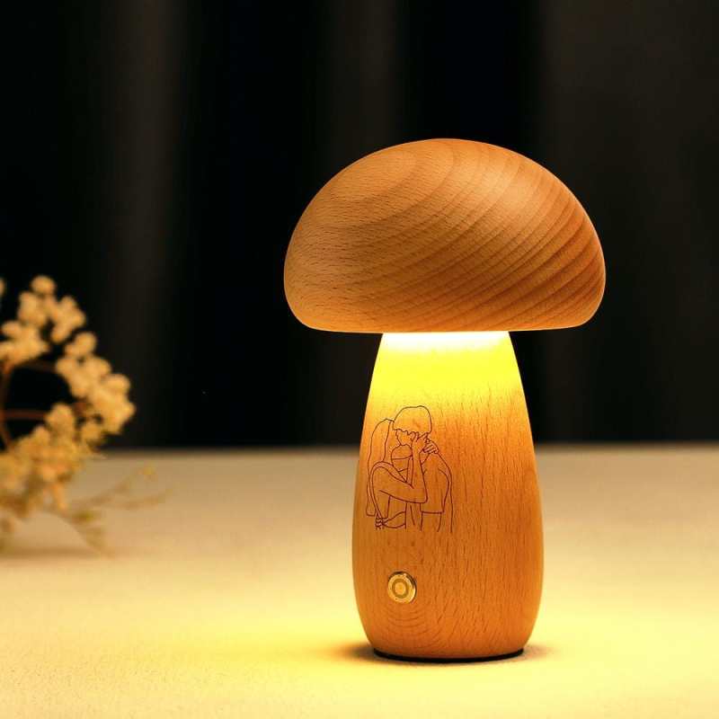 Create a cozy, comfortable atmosphere with this Real Handmade Solid Wood Mushroom Lamp. Its line drawing and gradient lights will bring life to any space, while its ambient night light makes for a peaceful sleep. Perfect for a unique gift for family and friends. Light up your world with this one-of-a-kind lamp. Step into a cozy paradise and experience the perfect night's sleep, or make it your go-to choice as a personalized gift for your loved ones!