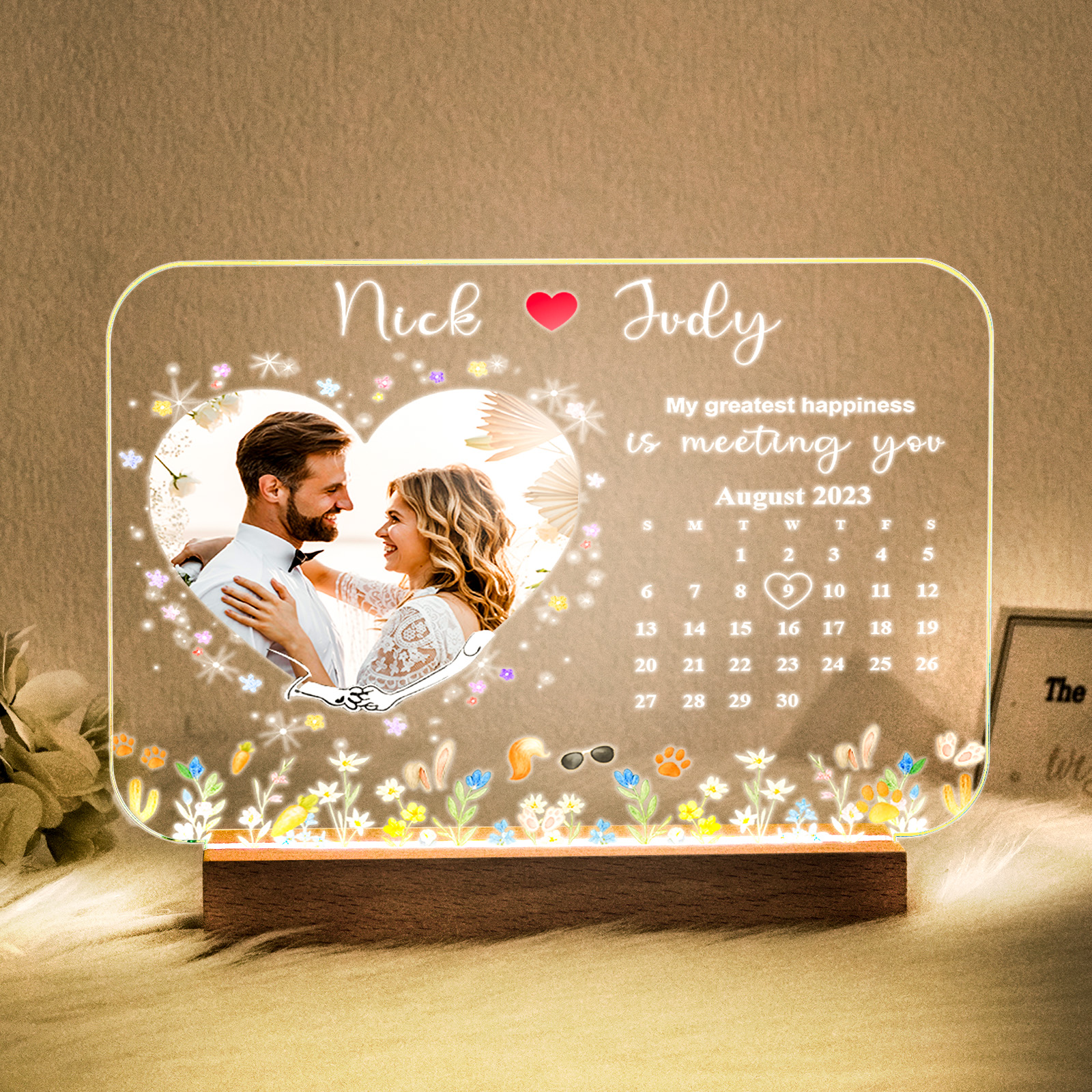Customize it your way: Add your names (like Nick & Judy!), a cherished photo, and that unforgettable date (hello, August 2023!) to turn this into a truly unique, heartfelt token of your bond. Adorned with playful, whimsical details (think paw prints, carrots, and charming florals), it balances sweetness and personality flawlessly.