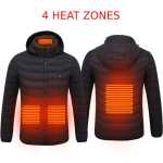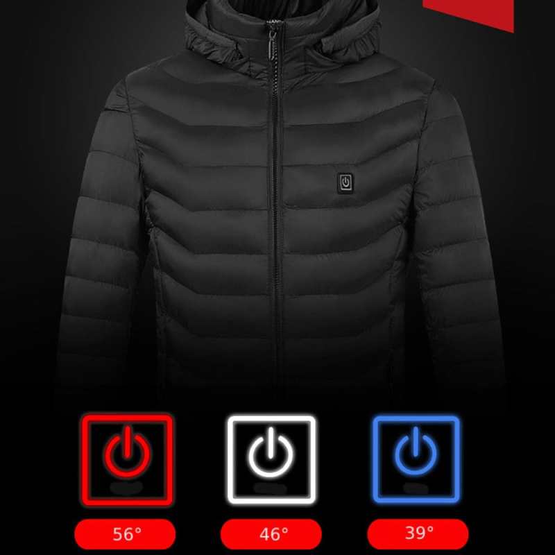 Our heated jacket is equipped with 3 carbon fiber heating zones (two on the front, one on the back, and one on the neck). It can heat your entire core body area and keeps you warm, there are two heating zones near the front pockets that can keep your hands warm at the same time. You can adjust 3 heating modes by short pressing the power button. Keep you warm in extremely cold winter.