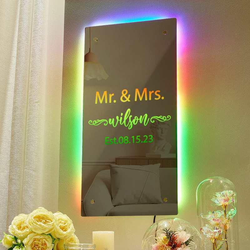 Please note: you can change the colours on the product via the remote control supplied you do not select the colours while ordering.The name mirror is made with safety in mind, we use acrylic safety mirror which lightweight and shatterproof.