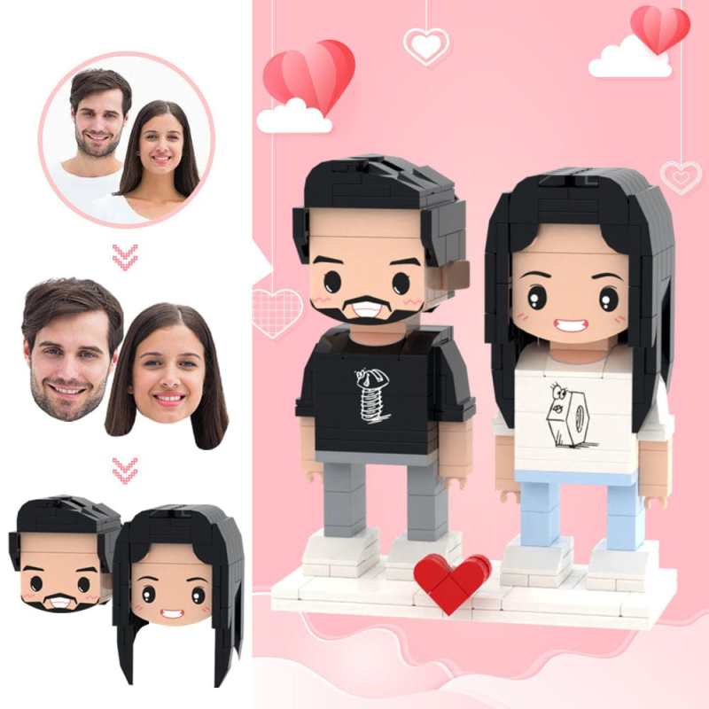 Valentine's Day Gifts Custom Head 2 People Cute Brick Figures Loving Couple Brick Figures