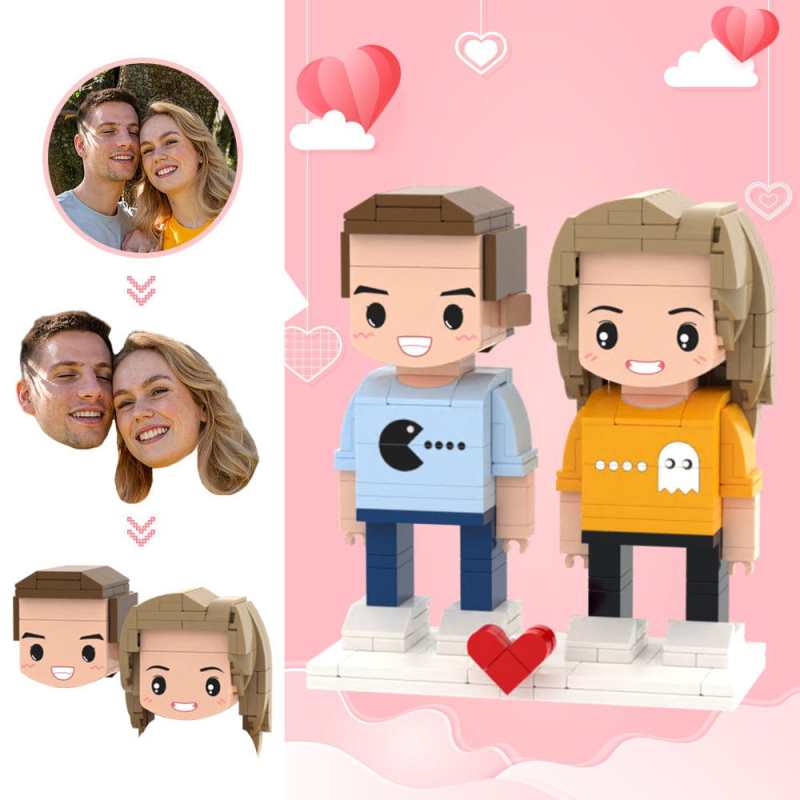 Valentine's Day Gifts Custom Head 2 People Cute Brick Figures Pac-Man Brick Figures