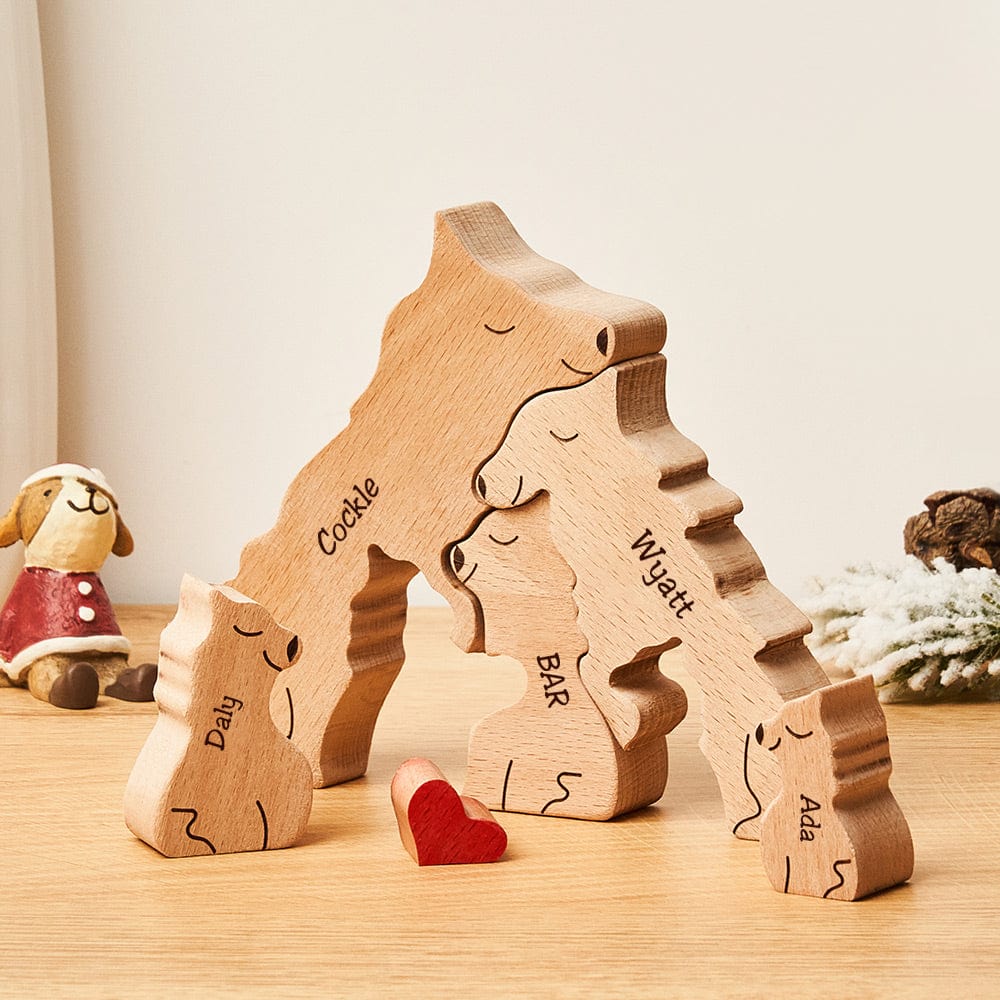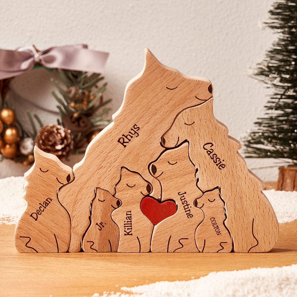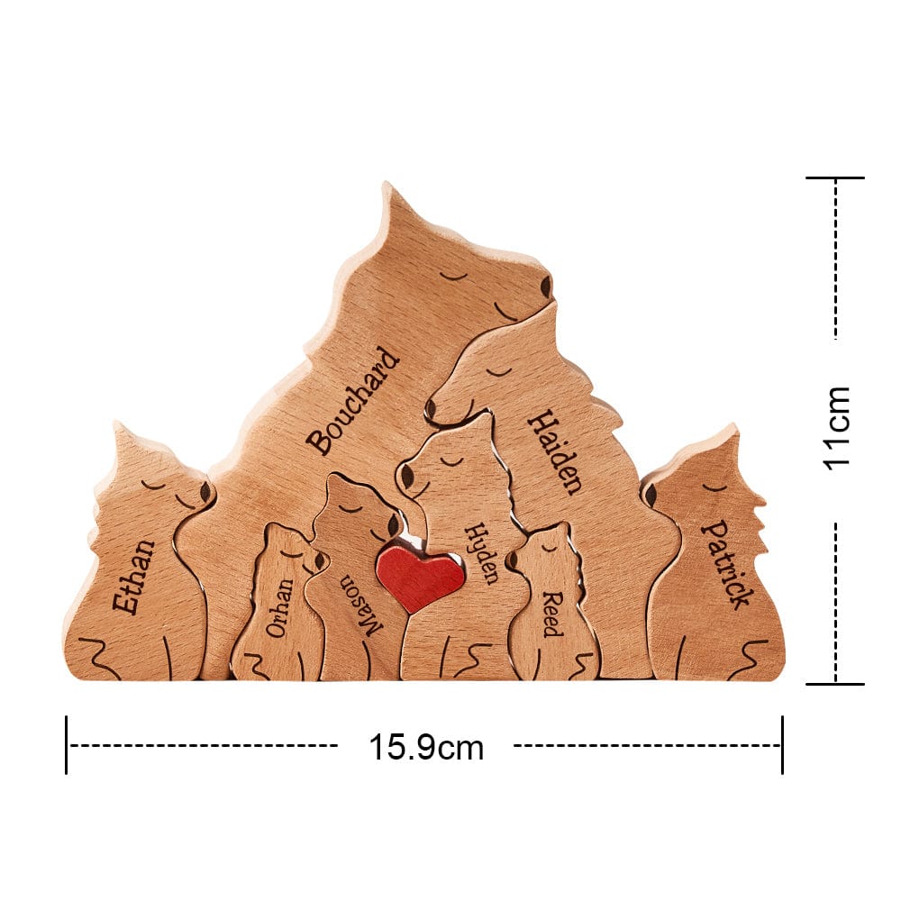 Valentine's Day Gifts Custom Names Wooden Wolf Family Puzzle Home Decor