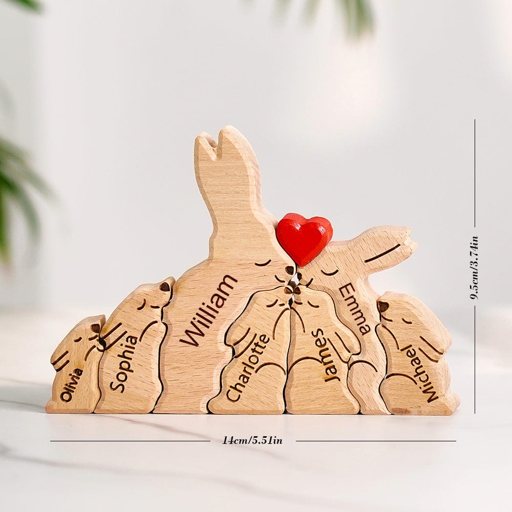 Valentine's Day Gifts Wooden Rabbit Family Puzzle Custom Names House Warming Gifts Home Decor