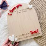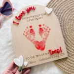 Personalized with your little one's name and date, this adorable craft is a perfect way to capture those tiny handprints in a creative and heartfelt way for their first valentine's day. The board features engraved details with hearts and "L_VE" in 3D acrylic, bringing a touch of love and warmth to your home. It's not just a keepsake, but a treasured memory that you can look back on as your child grows, reminding you of those precious early moments. This craft can be a fun activity to share with your child, making Valentine's Day even more special and memorable.