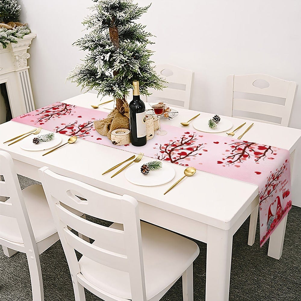 Create a festive table this Valentine's Day with this beautiful table runner. Perfect for setting Valentine's Day Dinner in the dining room or kitchen. It is the perfect addition to your Valentine's Day decor this season.