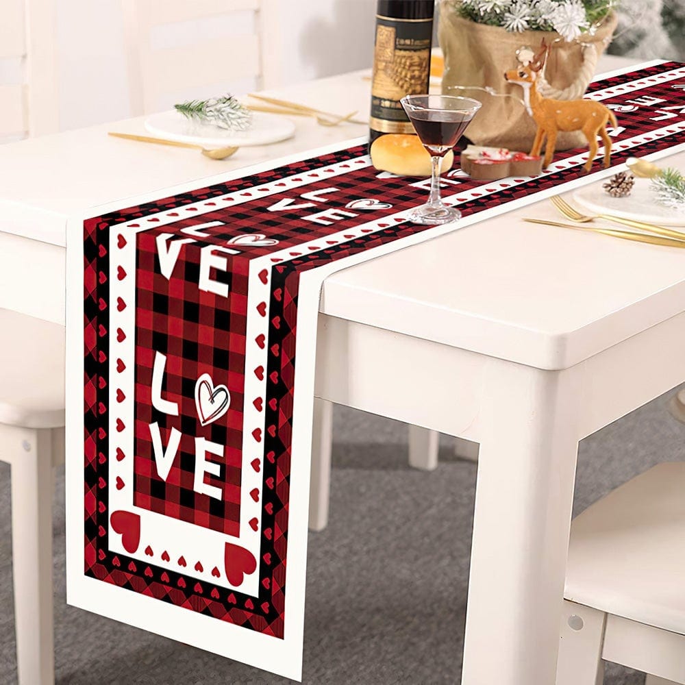 Create a festive table this Valentine's Day with this beautiful table runner. Perfect for setting Valentine's Day Dinner in the dining room or kitchen. It is the perfect addition to your Valentine's Day decor this season.