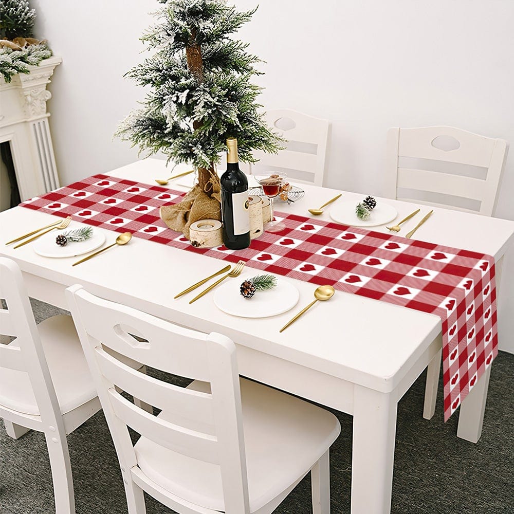 Create a festive table this Valentine's Day with this beautiful table runner. Perfect for setting Valentine's Day Dinner in the dining room or kitchen. It is the perfect addition to your Valentine's Day decor this season.