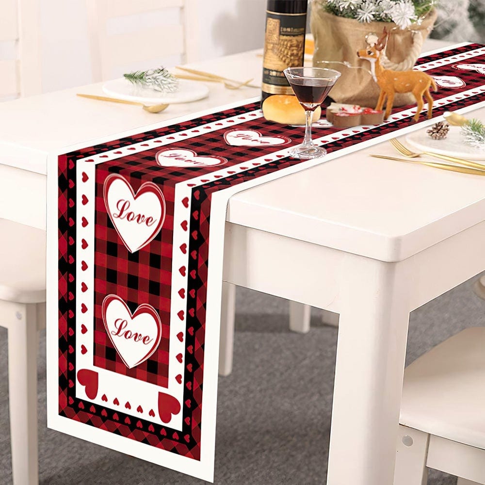 Create a festive table this Valentine's Day with this beautiful table runner. Perfect for setting Valentine's Day Dinner in the dining room or kitchen. It is the perfect addition to your Valentine's Day decor this season.